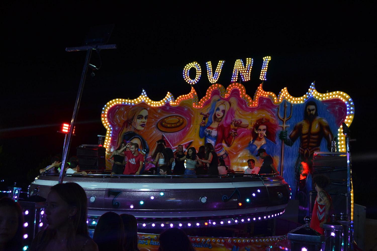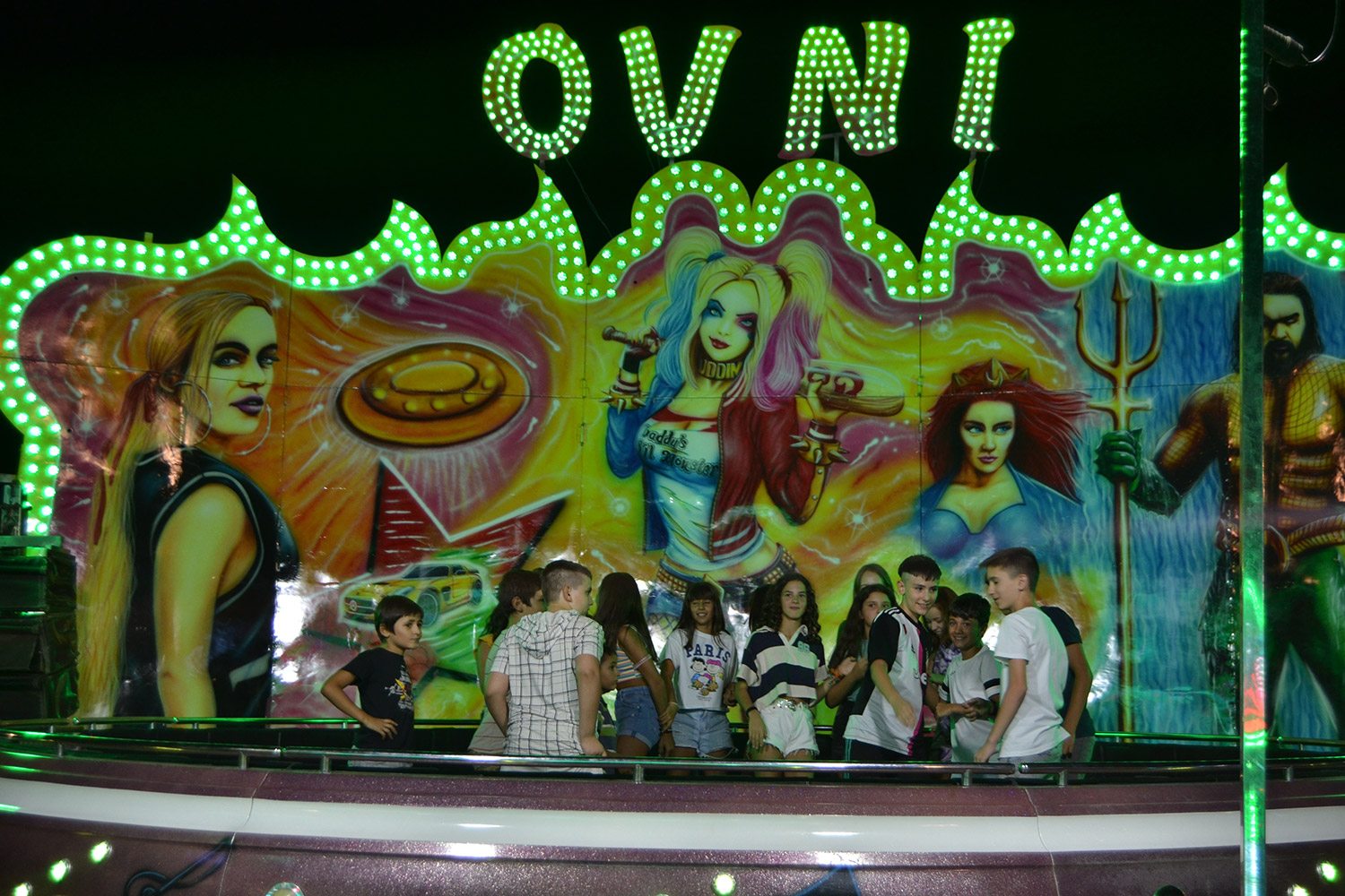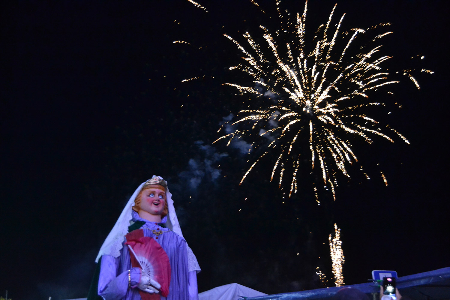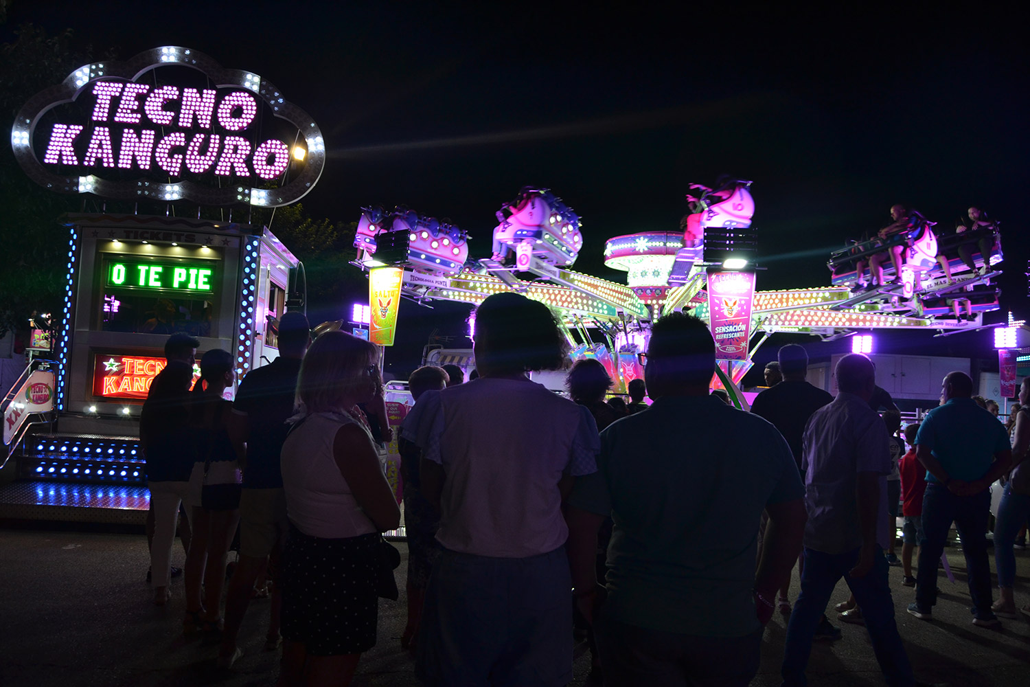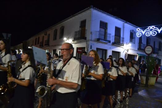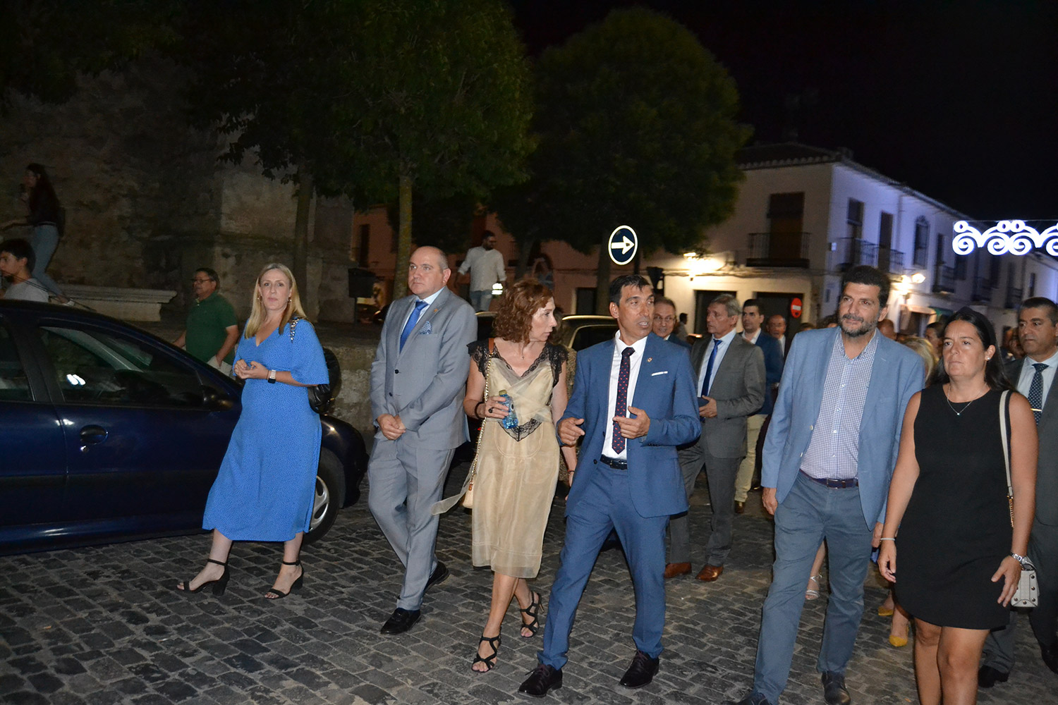 El primer acto oficial de la Feria dio paso al desfile de gigantes y cabezudos, que acompañaron a la comitiva de Reina, damas y zagales, autoridades locales y provinciales y a los muchos vecinos, sobre todo niños, que no quisieron perderse el desfile hasta el recinto ferial. En su arco de entrada, la Reina cortó la cinta inaugural y con ello, el encendido de luces y los fuegos artificiales.