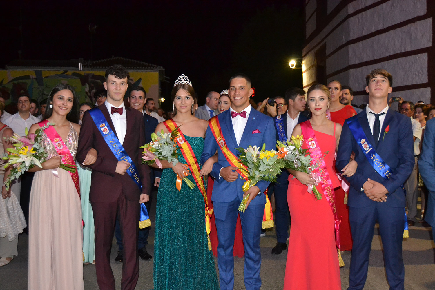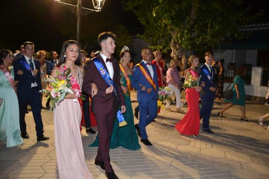Los jóvenes representantes de la Feria 2019 dieron paso a las nuevas damas y zagales 2022 - Alicia Carneros, Reina; Christian González, Zagal Mayor; damas Laura Masegosa y Marta Escobar y zagales Daniel Rivas y José Manuel Camacho.