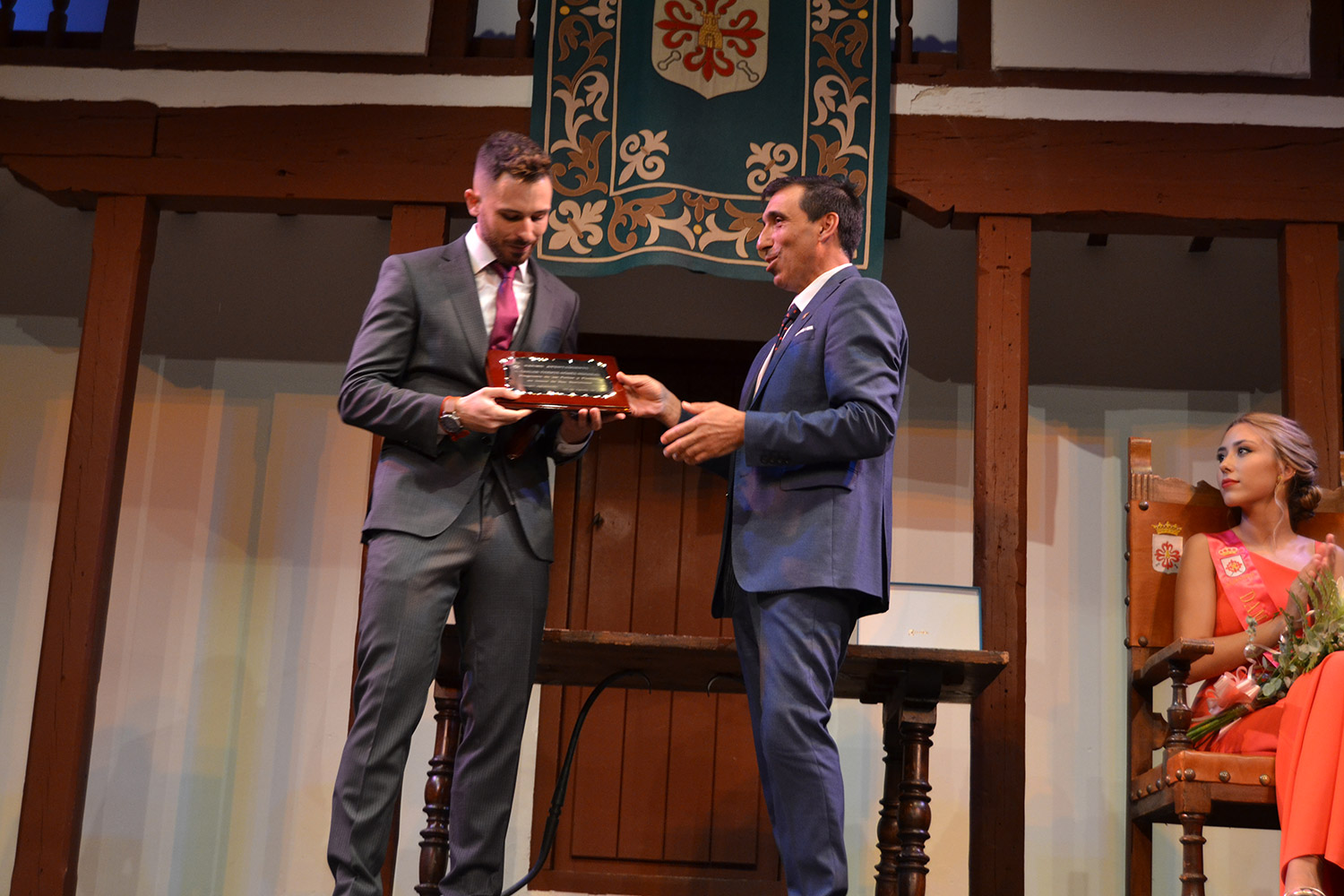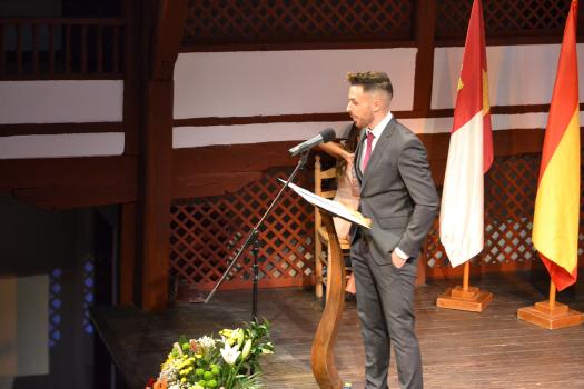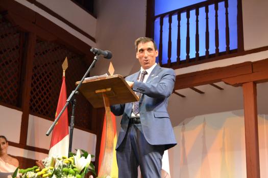 El alcalde Daniel Reina felicitó al pregonero a quien entregó una placa como muestra de agradecimiento por aceptar la invitación. Reina que hizo mención a sus ocho años de alcalde “acaso el último para mí”, centró su discurso en la educación de los niños y jóvenes en sus dos vertientes: conocimientos y valores. Estos últimos, para el regidor almagreño es “responsabilidad de la sociedad entera”. De la primera, como contribución para promover el conocimiento “aunque fuera simbólica, el gobierno municipal implantaos la beca al mejor expediente académico dentro de los premios Manuel Calleja para alentar a los chicos y chicas de Almagro en el arduo proceso de su formación, que redundará a la larga en beneficio de todos.”