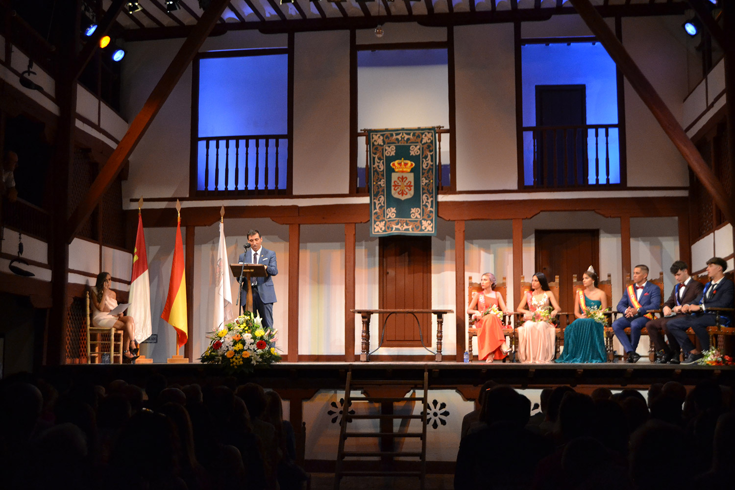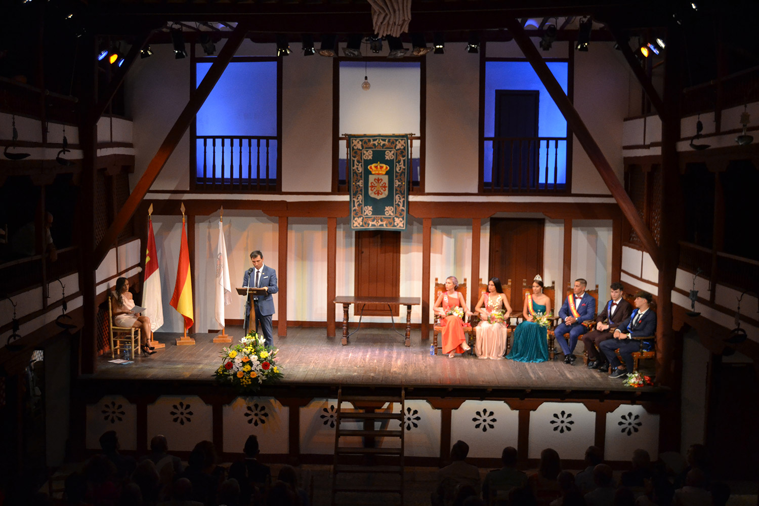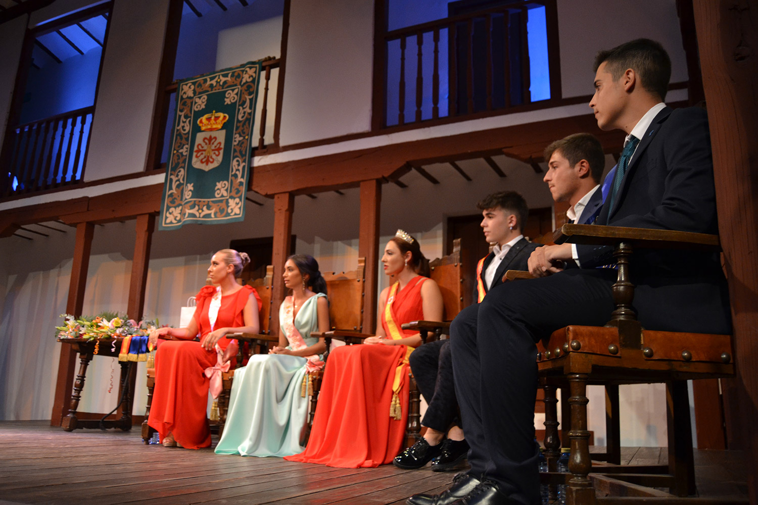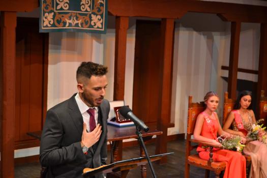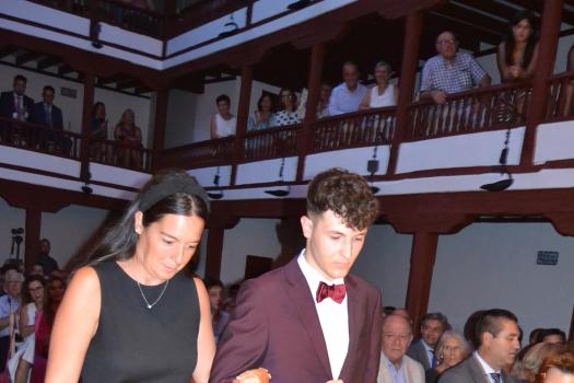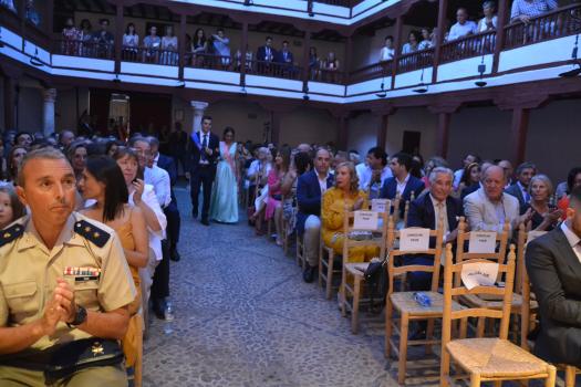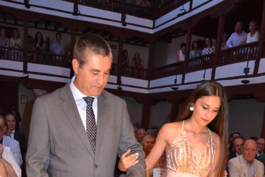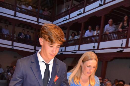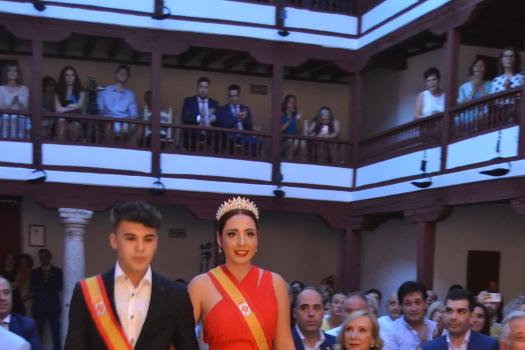 El Corral de Comedias, dos años después, vuelve a ser testigo del pistoletazo de salida de los días festivos más esperados en Almagro, los días de Feria. Una espera, este agosto, más deseada de lo habitual, sin mascarillas, sin restricciones y con todas las ganas de pasarlo bien. El acto oficial de inicio de Feria, presentado por la periodista Ángela Morcillo, comenzó con el traspaso de poderes de la reina, zagal mayor damas y zagales en este caso de la Feria 2019 a los jóvenes Alicia Carneros Espinosa, Reina; Christian Manuel González Sobrino Zagal Mayor; damas Laura Masegosa Naranjo y Marta Escobar Espinosa y zagales Daniel Rivas Broceño y José Manuel Camacho Ureña que este 2022 representa a la juventud almagreña.