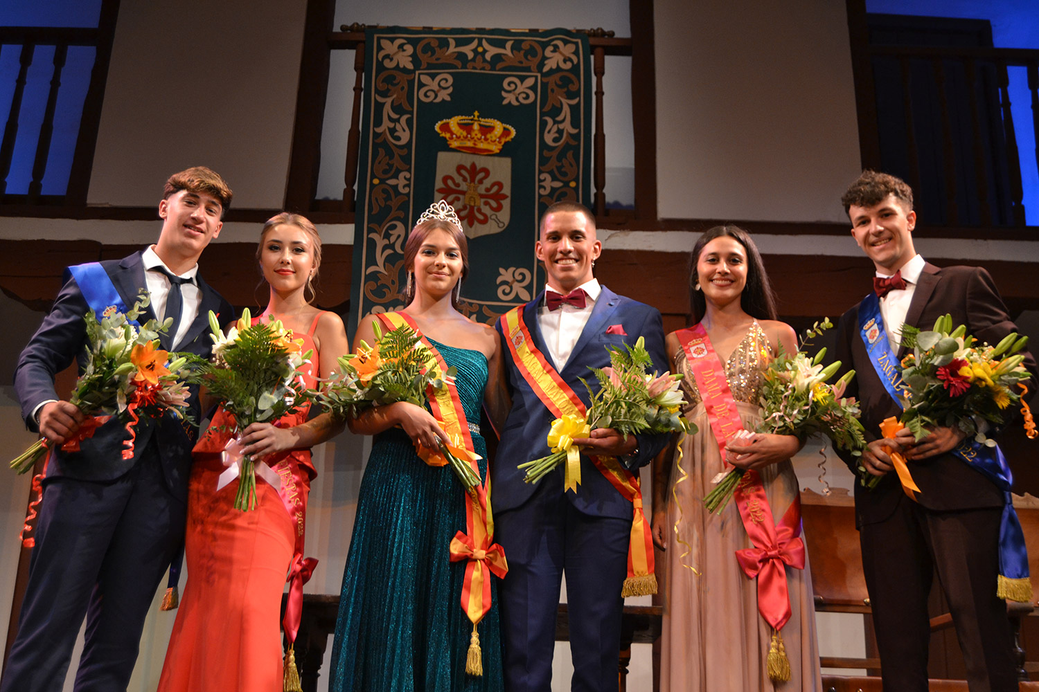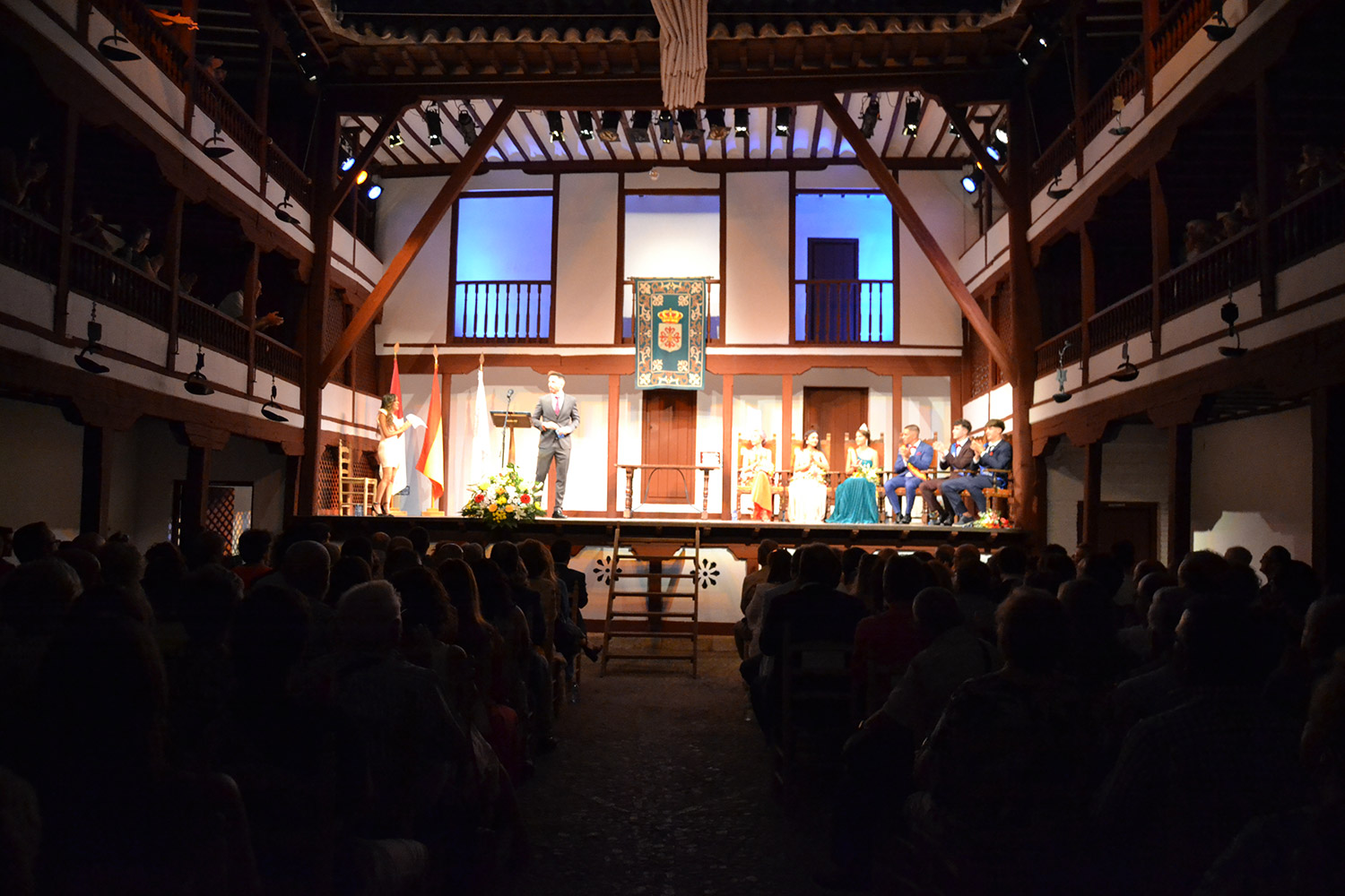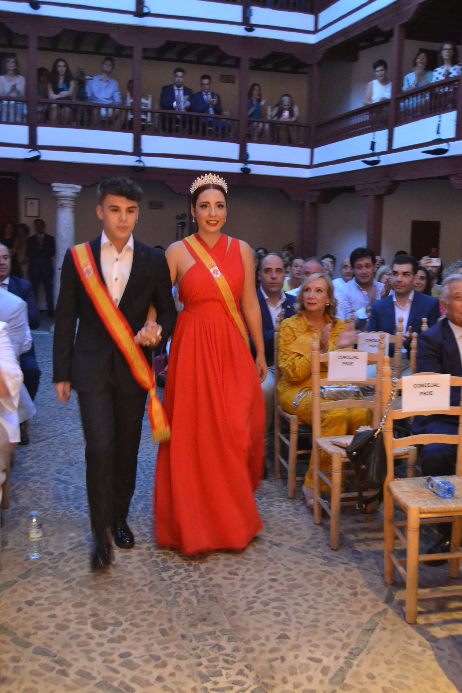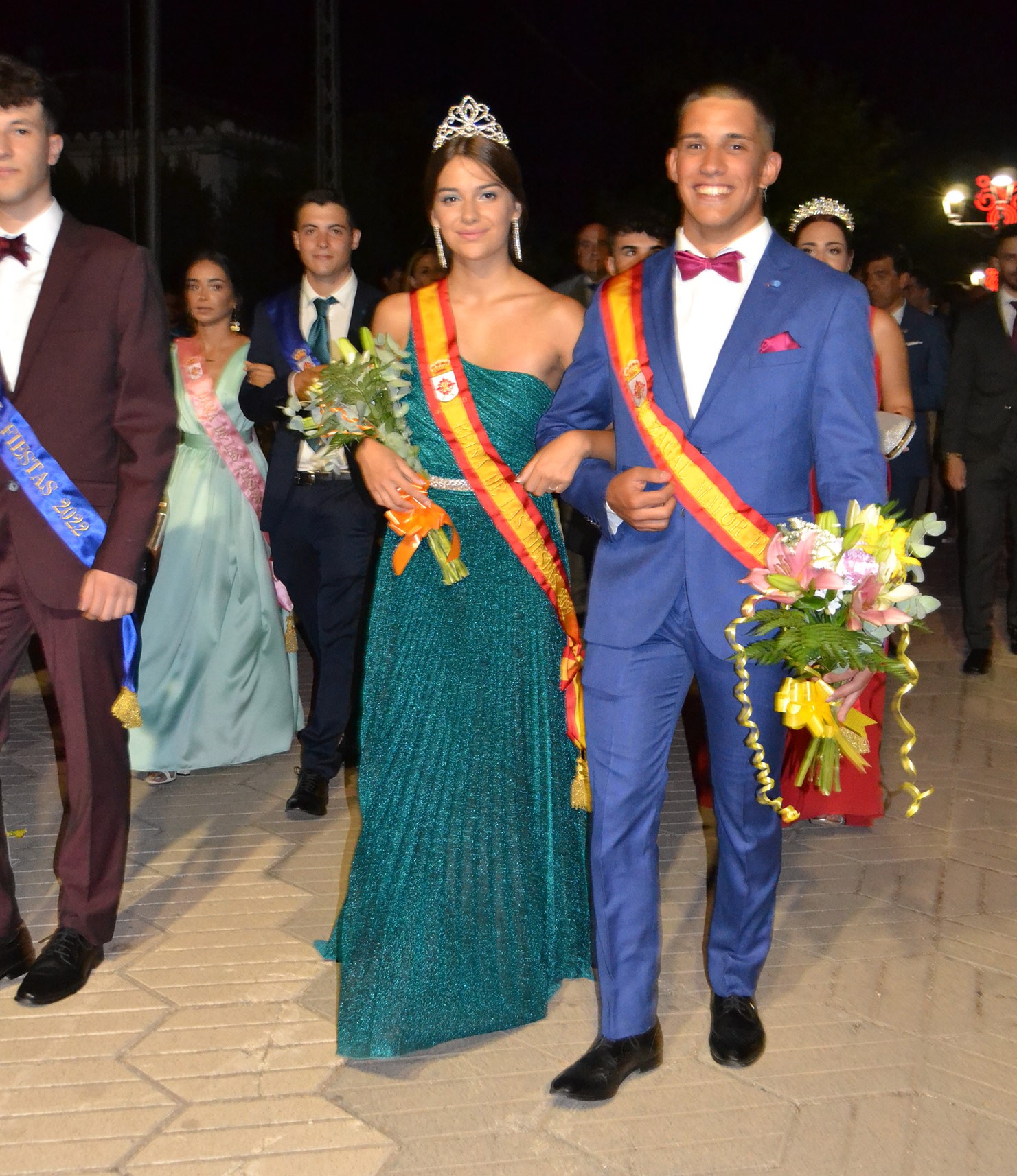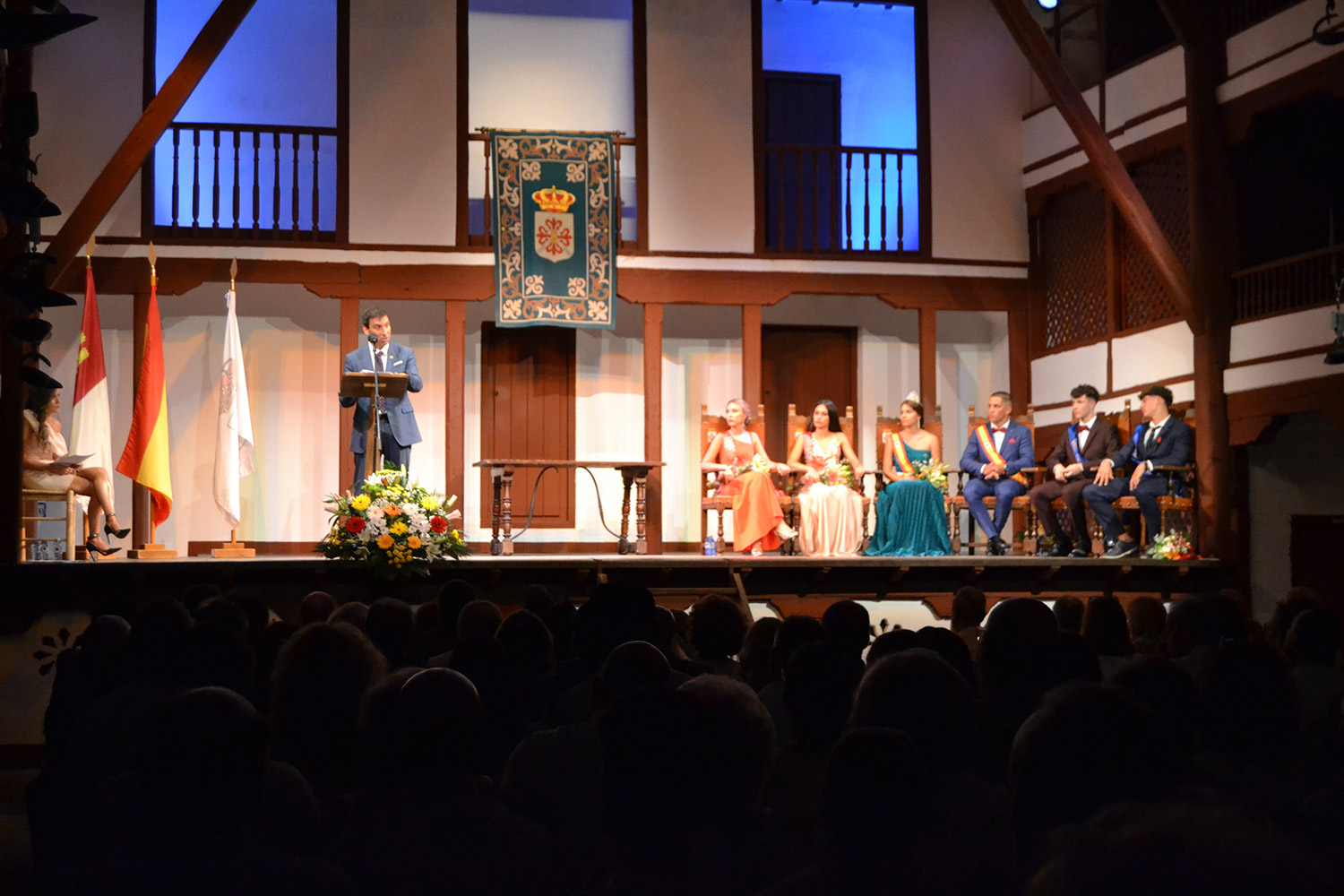 El Corral de Comedias, dos años después, vuelve a ser testigo del pistoletazo de salida de los días festivos más esperados en Almagro, los días de Feria. Una espera, este agosto, más deseada de lo habitual, sin mascarillas, sin restricciones y con todas las ganas de pasarlo bien. El acto oficial de inicio de Feria, presentado por la periodista Ángela Morcillo, comenzó con el traspaso de poderes de la reina, zagal mayor damas y zagales en este caso de la Feria 2019 a los jóvenes Alicia Carneros Espinosa, Reina; Christian Manuel González Sobrino Zagal Mayor; damas Laura Masegosa Naranjo y Marta Escobar Espinosa y zagales Daniel Rivas Broceño y José Manuel Camacho Ureña que este 2022 representa a la juventud almagreña.