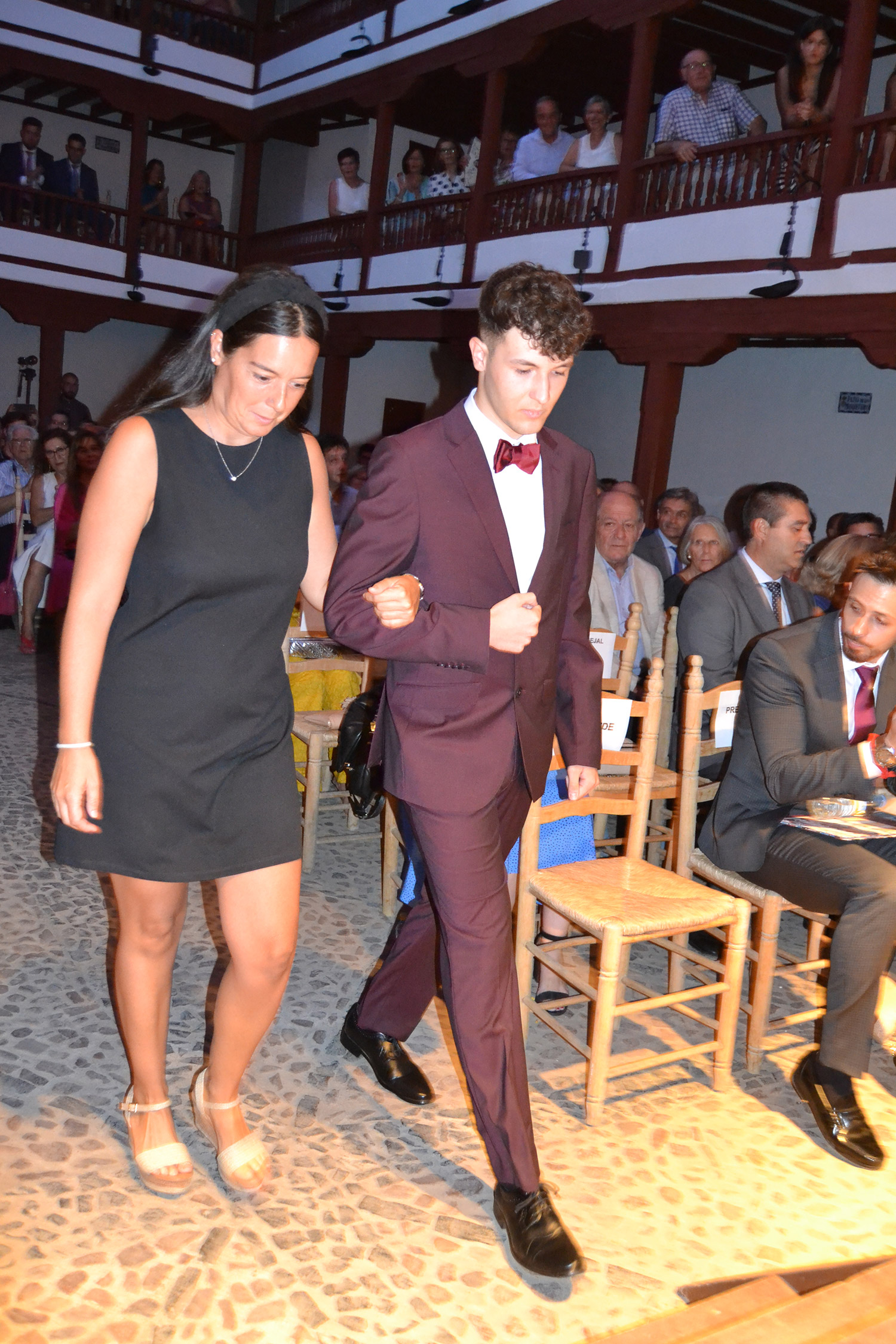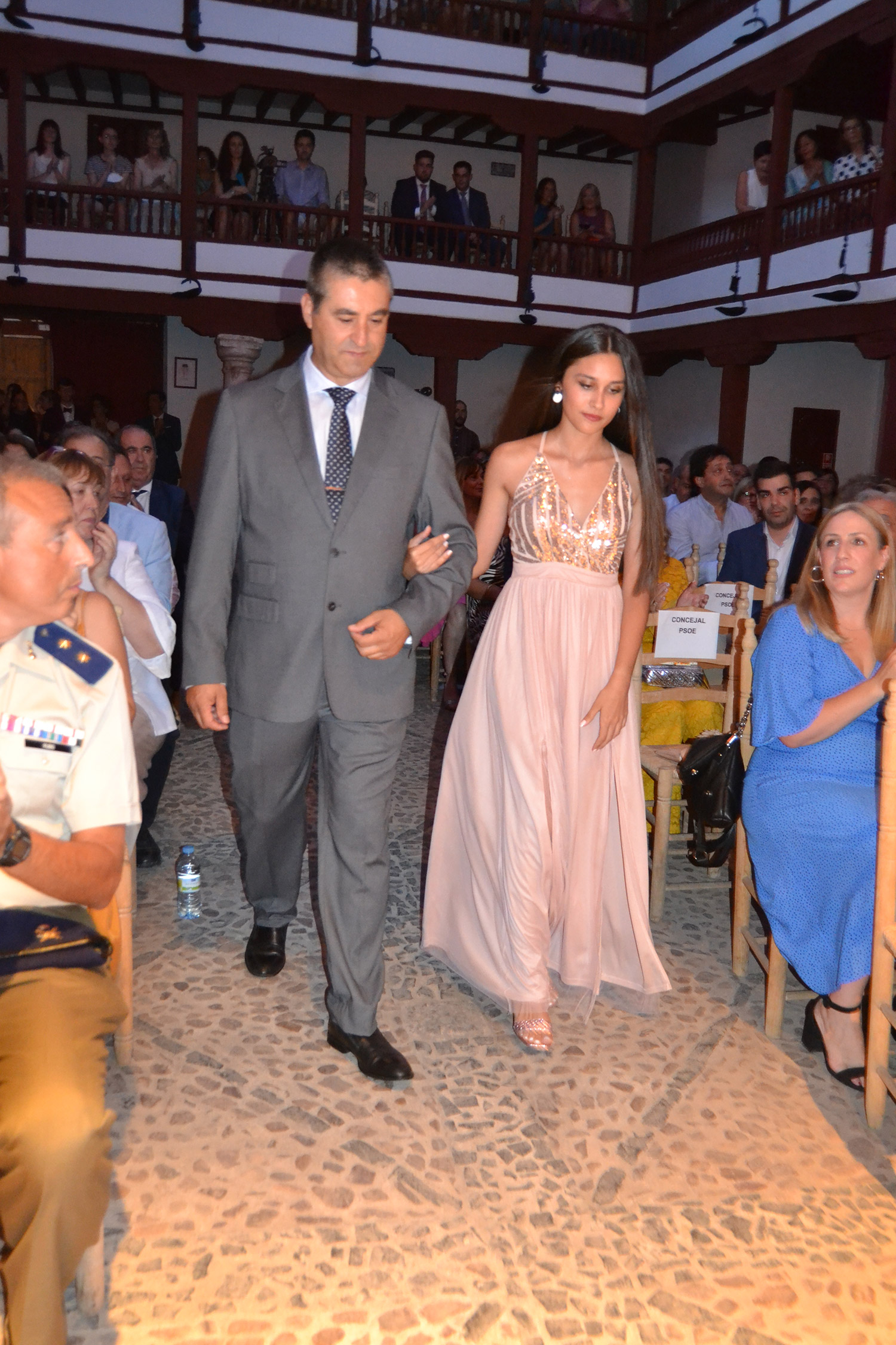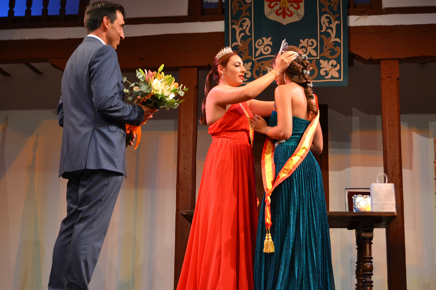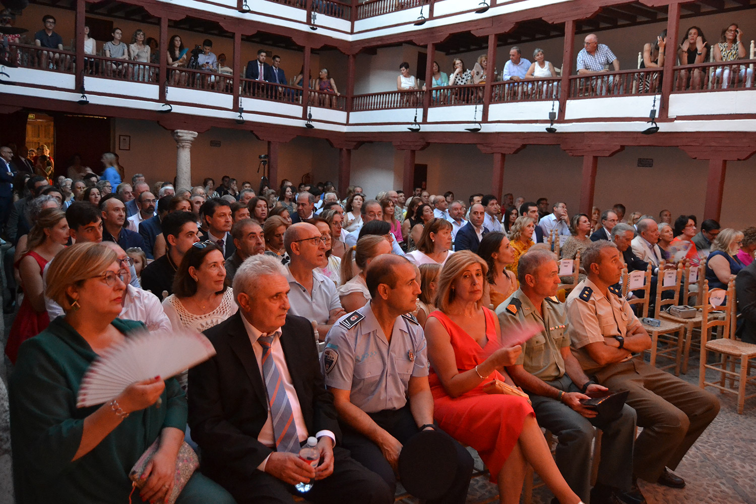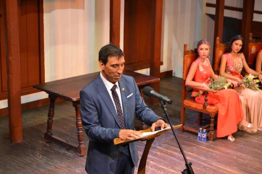 El Corral de Comedias, dos años después, vuelve a ser testigo del pistoletazo de salida de los días festivos más esperados en Almagro, los días de Feria. Una espera, este agosto, más deseada de lo habitual, sin mascarillas, sin restricciones y con todas las ganas de pasarlo bien. El acto oficial de inicio de Feria, presentado por la periodista Ángela Morcillo, comenzó con el traspaso de poderes de la reina, zagal mayor damas y zagales en este caso de la Feria 2019 a los jóvenes Alicia Carneros Espinosa, Reina; Christian Manuel González Sobrino Zagal Mayor; damas Laura Masegosa Naranjo y Marta Escobar Espinosa y zagales Daniel Rivas Broceño y José Manuel Camacho Ureña que este 2022 representa a la juventud almagreña.