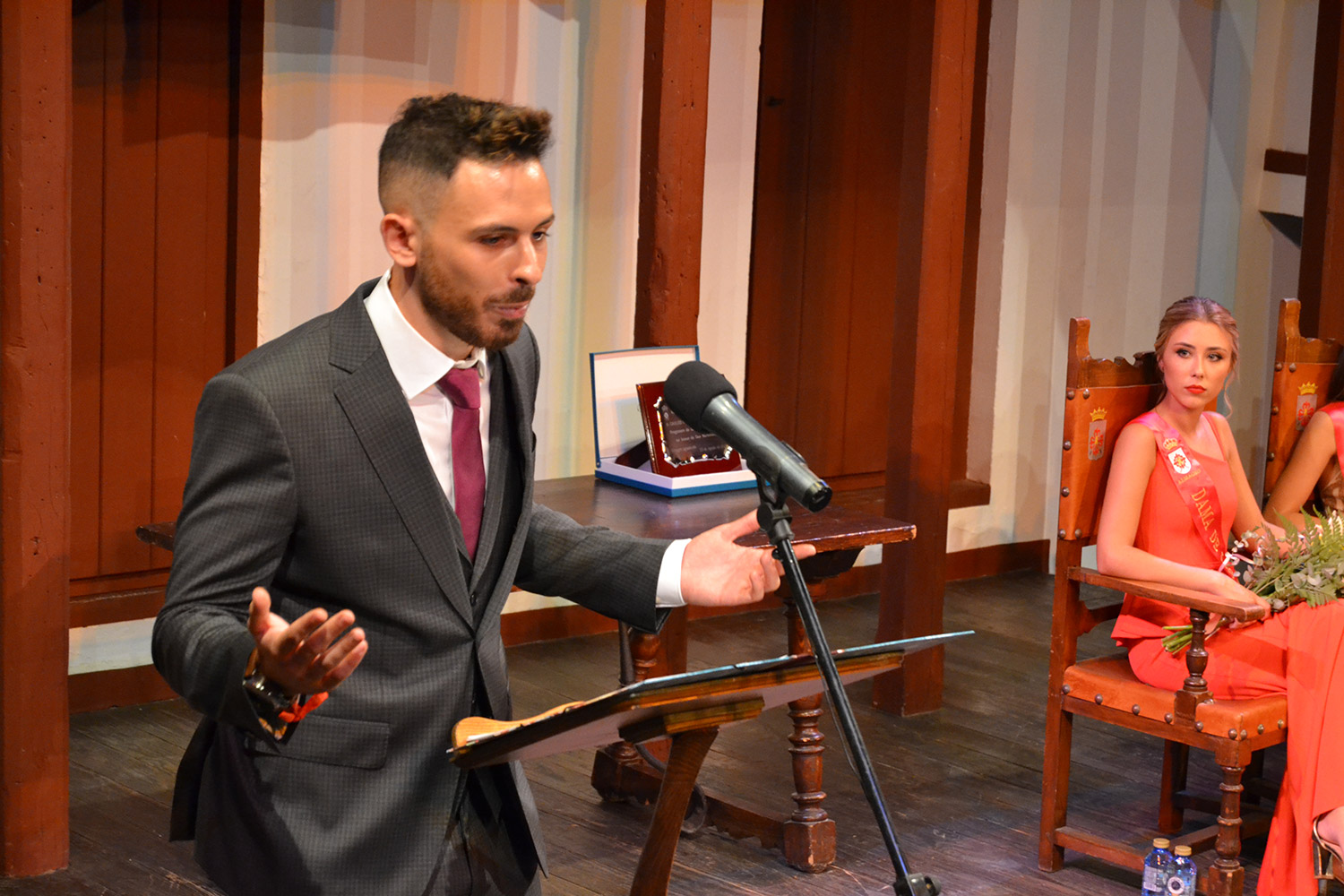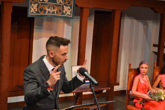 A continuación, otro joven, Carlos Vicente Gómez Bermejo, subió al escenario para invitar a celebrar la Feria. El periodista de Radio Marca y comentarista de Gol TV, pronunció un pregón ágil, con lenguaje cercano, bien pronunciado y entretenido. En varias ocasiones hizo reír a los asistentes que llenaron el Corral. Su pregón estuvo marcado por sus recuerdos que fue hilando con sus años de infancia, adolescencia y juventud en los días de Feria, en los que siempre se repetía una frase que decía un feriante “Todo lo bueno acaba”. Y así con esa soltura y frescura que da la juventud a los 26 años finalizó este pregón de vuelta a la normalidad.