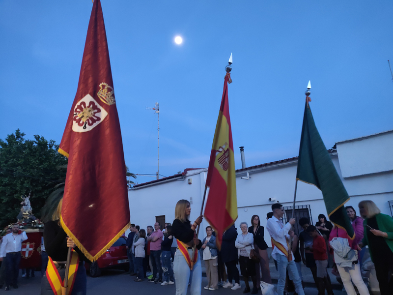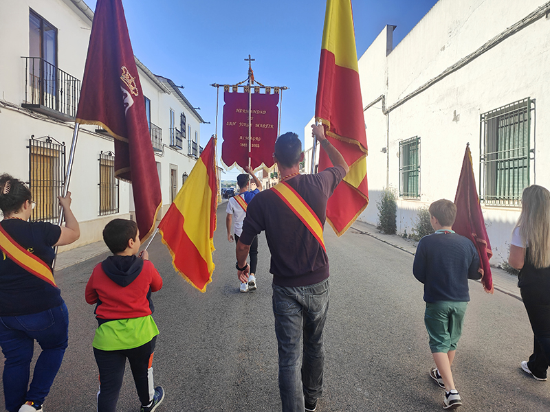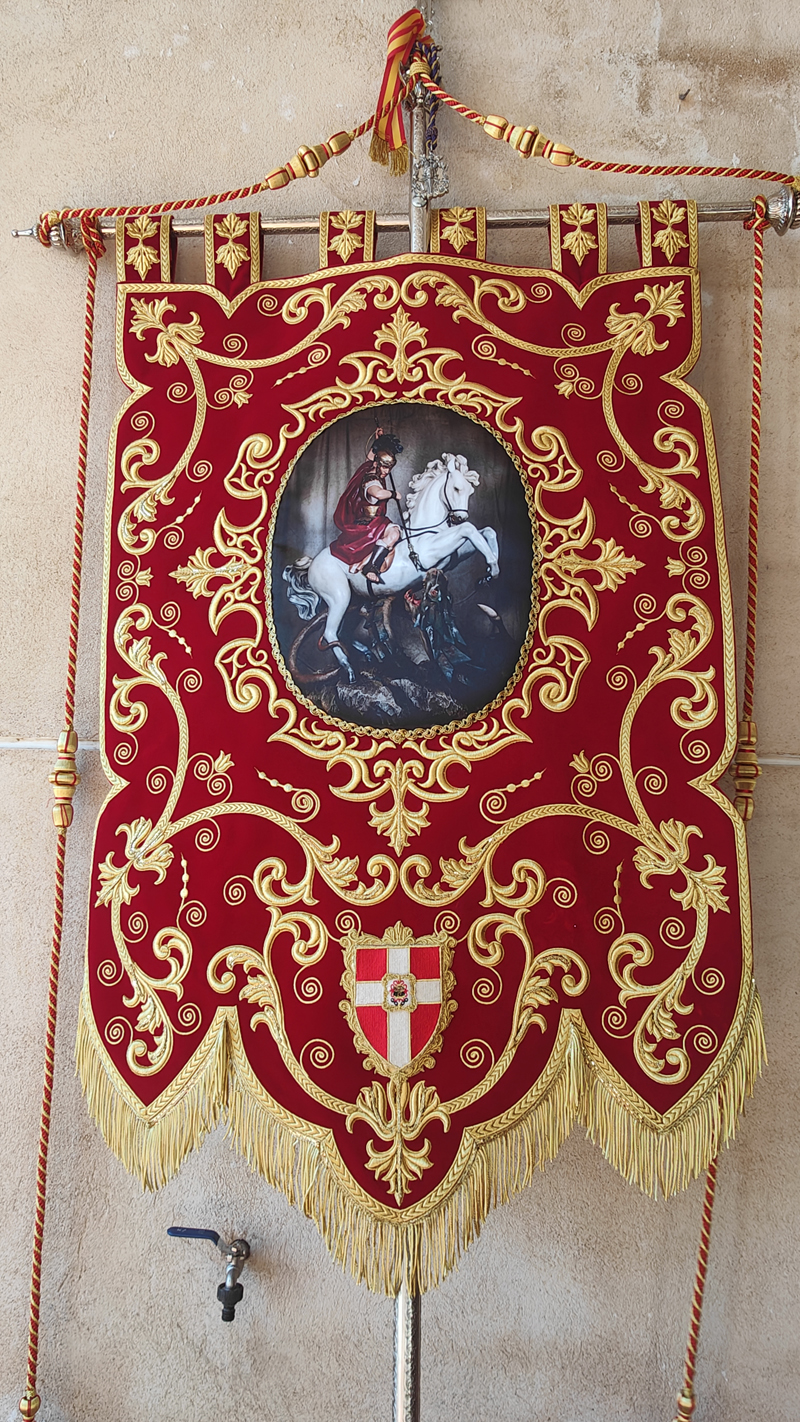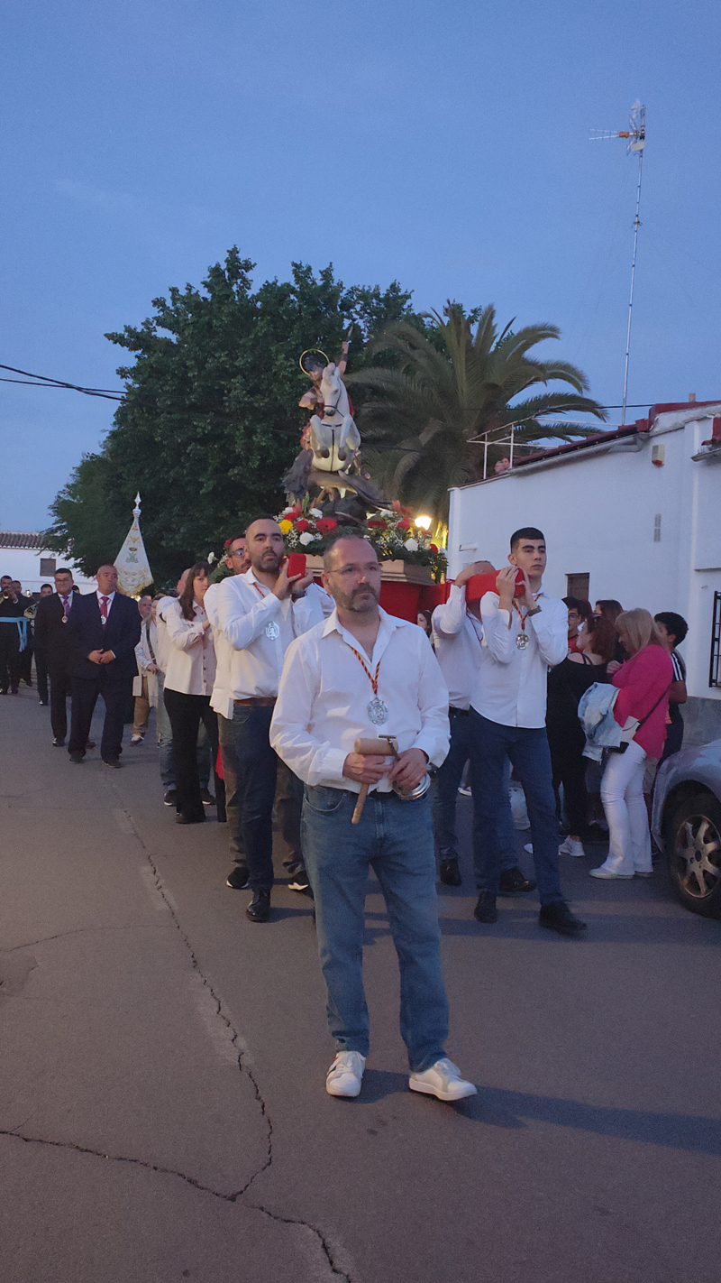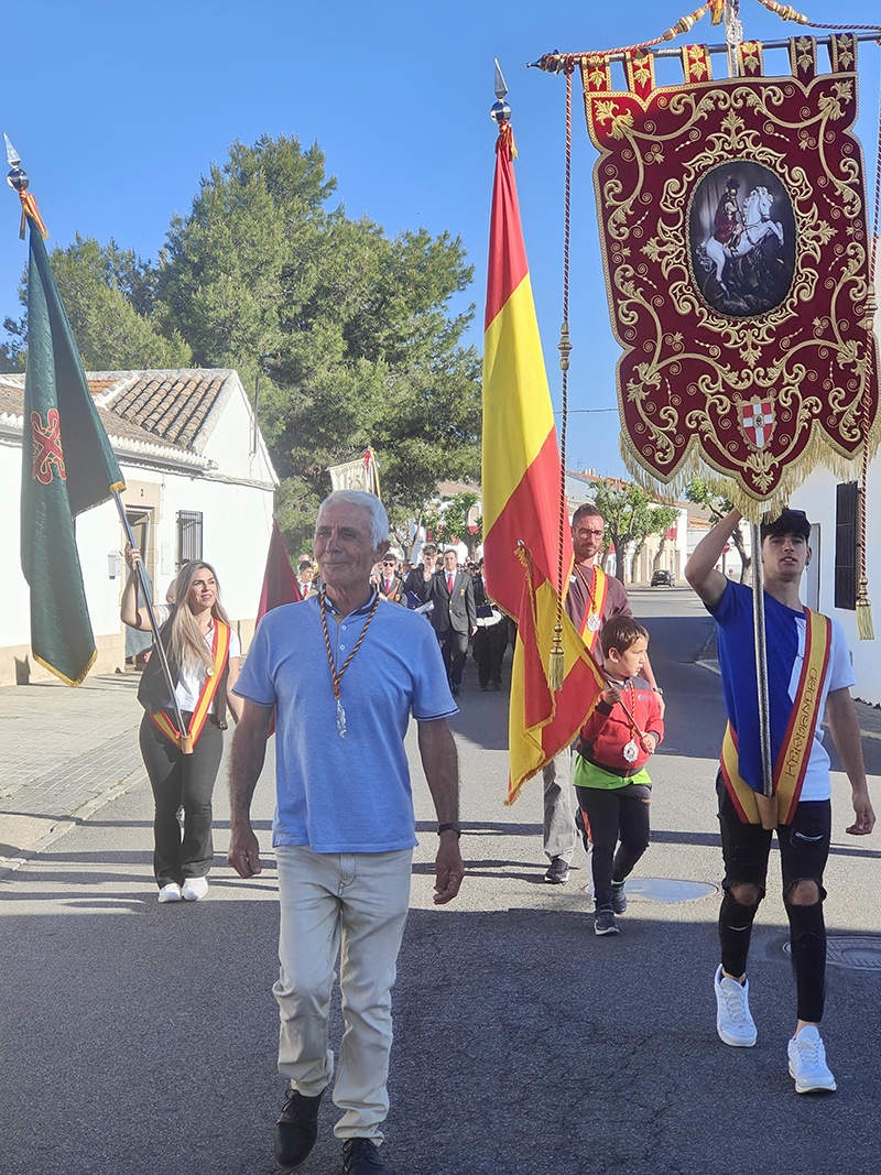 Como punto de partida del pasacalle, su sede, la ermita de la Magdalena. Desde aquí, la comitiva de abanderados, banda de música, hermanos de San Jorge y vecinos parten a la casa del capitán y de los abanderados. En esta ocasión, la primera parada fue en casa de la capitana, Elvira María Gallego Garrido y de la tercera bandera, Denis Valdelomar Garrido. Tras los correspondientes, todos los participantes fueron recibidos con una invitación que se repitió de casa en casa de los abanderados, agrupados en memoria de Jesús el Militar y Los Sinergias.