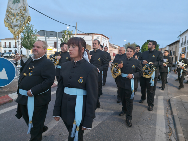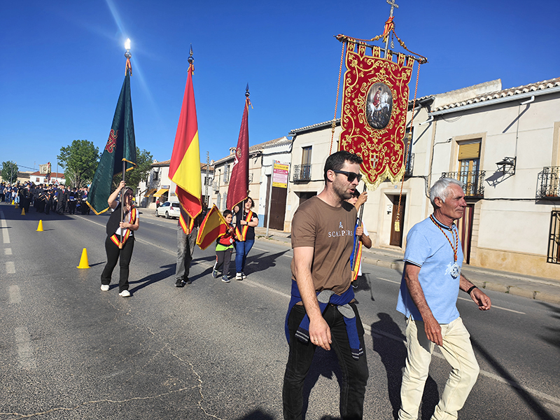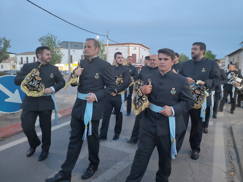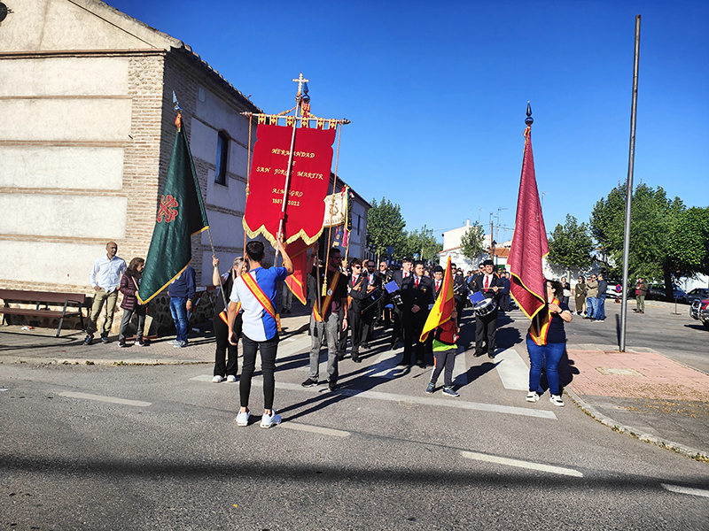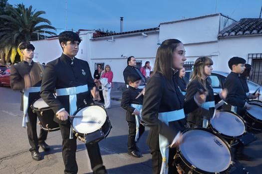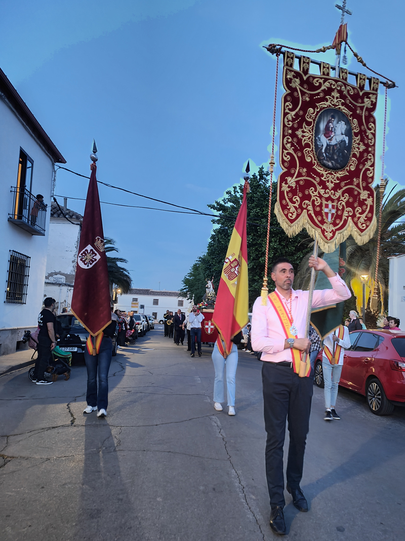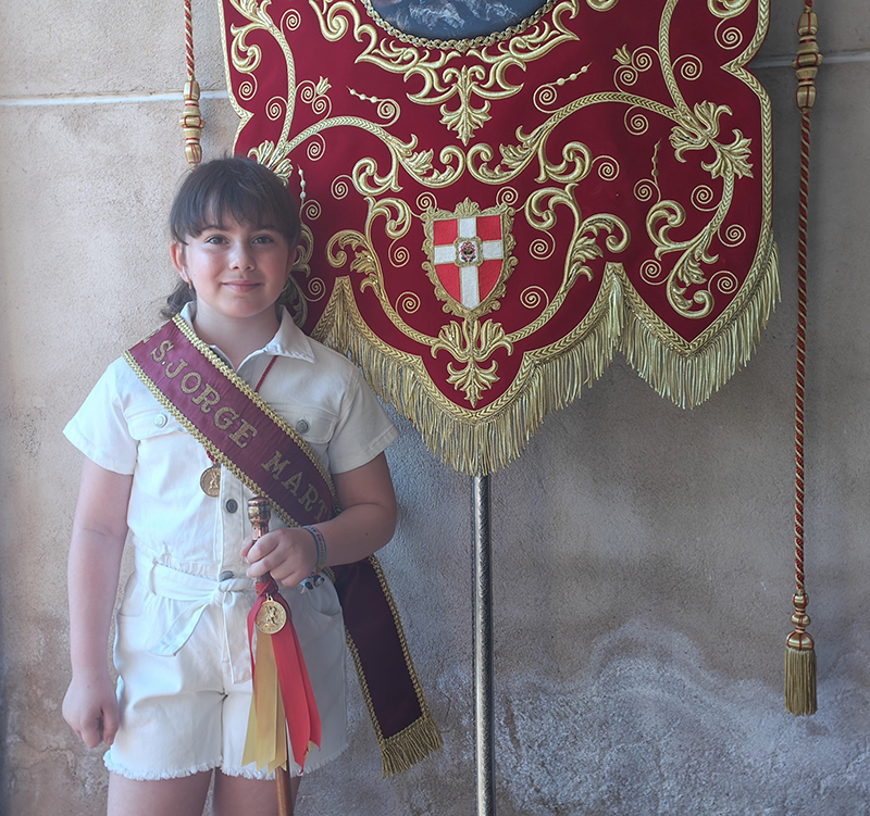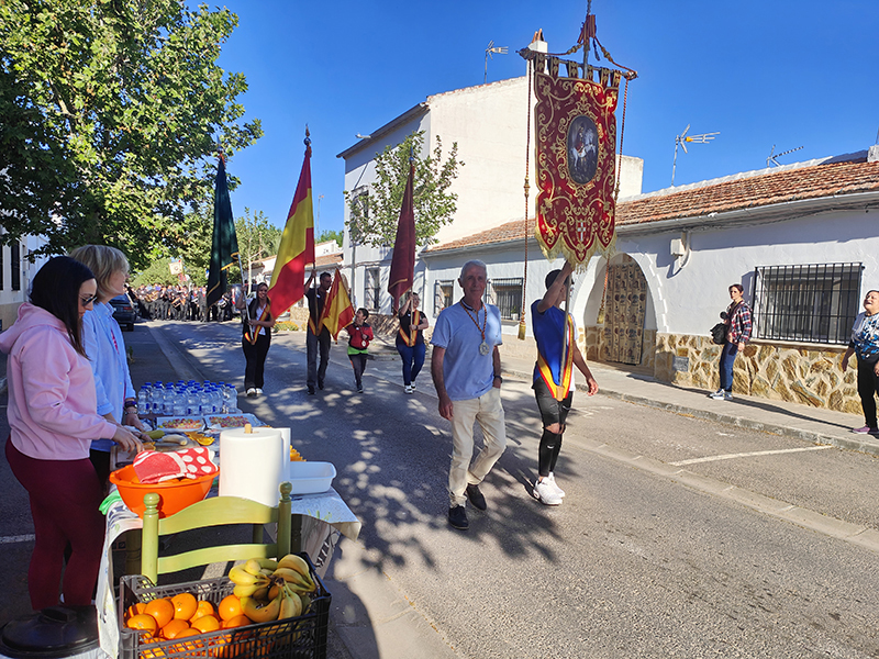 Como punto de partida del pasacalle, su sede, la ermita de la Magdalena. Desde aquí, la comitiva de abanderados, banda de música, hermanos de San Jorge y vecinos parten a la casa del capitán y de los abanderados. En esta ocasión, la primera parada fue en casa de la capitana, Elvira María Gallego Garrido y de la tercera bandera, Denis Valdelomar Garrido. Tras los correspondientes, todos los participantes fueron recibidos con una invitación que se repitió de casa en casa de los abanderados, agrupados en memoria de Jesús el Militar y Los Sinergias.