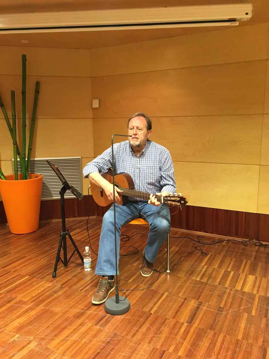 El diálogo entre la literatura y la ilustración y la pintura congregó ayer en la Biblioteca Pública del Estado a numeroso público con motivo de la inauguración del III Salón del Poema Ilustrado, que permanecerá en el salón de actos de la institución cultural hasta el próximo 28 de mayo. Esta edición ha estado especialmente dedicada a la figura de Antonio Machado, con motivo del 80 aniversario del exilio y muerte del poeta sevillano. El cantautor Alfredo Sánchez, marcó el inicio y el final de la ceremonia con la interpretación de varias canciones a partir de letras machadianas, lo que también dio lugar a la que el director del Celcit, Luis Molina, recitó también algunos fragmentos. Especialmente emotivo fue el cierre con ‘Cantares’ en la que el público se sumó coreando las tres últimas estrofas de la canción compuesta por Joan Manuel Serrat.
