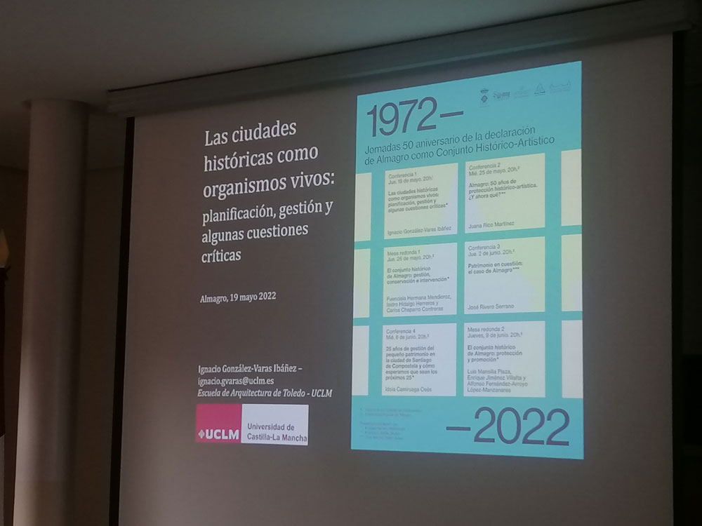 Organizadas de manera conjunta por la Concejalía de Cultura del Ayuntamiento de Almagro, el Ateneo y coordinadas por el catedrático de Historia del Arte de la UCLM, Enrique Herrera, las Jornadas comenzaron con la ponencia del catedrático de Composición arquitectónica de la Escuela de Arquitectura de Toledo, Ignacio González-Varas. Su conferencia versó sobre la gestión y la planificación de las ciudades históricas como organismos vivos.
