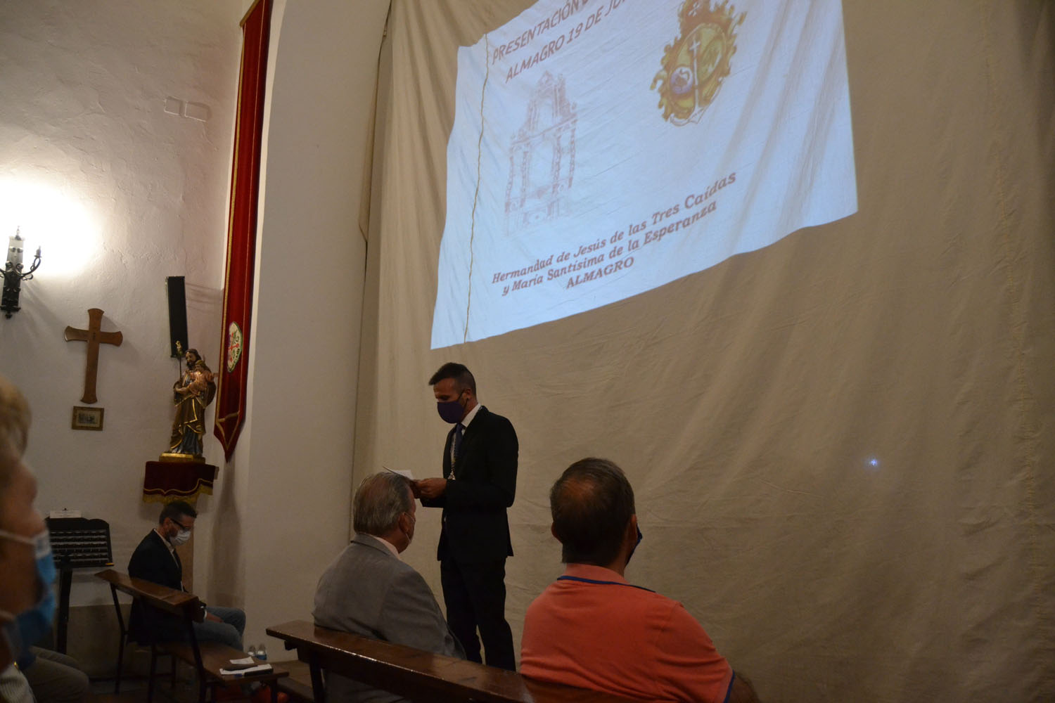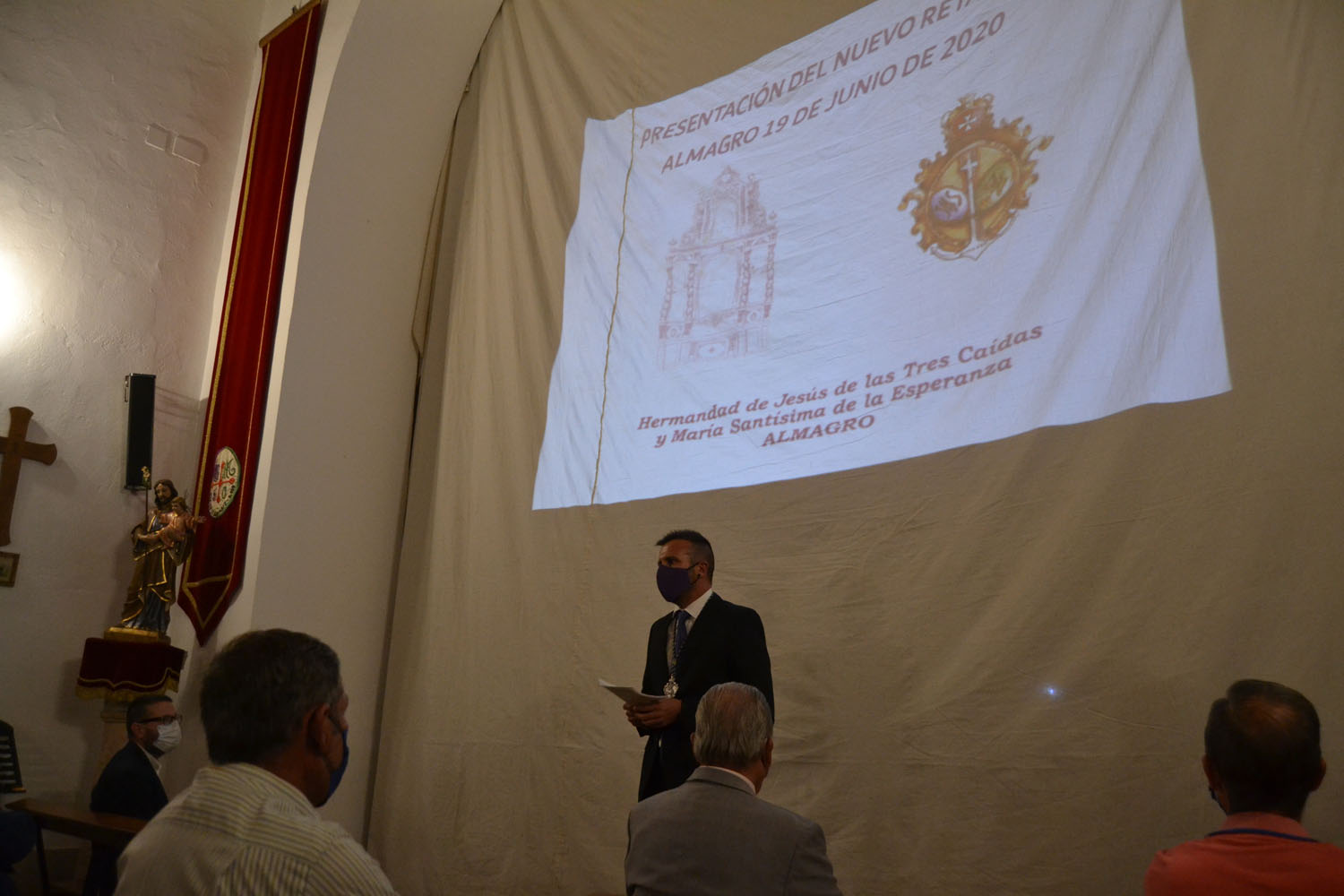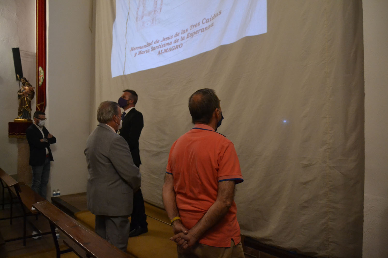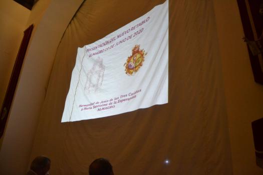 La presentación comenzó con una proyección de todo el proceso de rehabilitación del altar mayor hasta su definitiva instalación del retablo. Las imágenes proyectadas muestran el trabajo realizado en la cubierta del altar desmontado por completo, la restauración y recuperación del artesonado que se encontraba oculto previo a la realización de este retablo del que también se proyectaron imágenes del proceso de su creación. David Martínez, responsable de la empresa Artemartinez, explicó algunos de detalles de la realización del proyecto. La Hermandad, en reconocimiento a su trabajo, le entregó un obsequio.