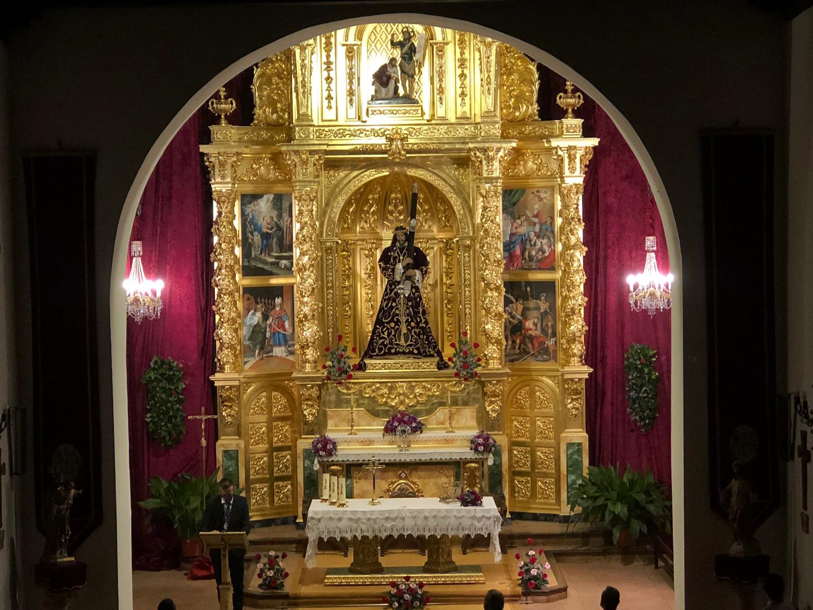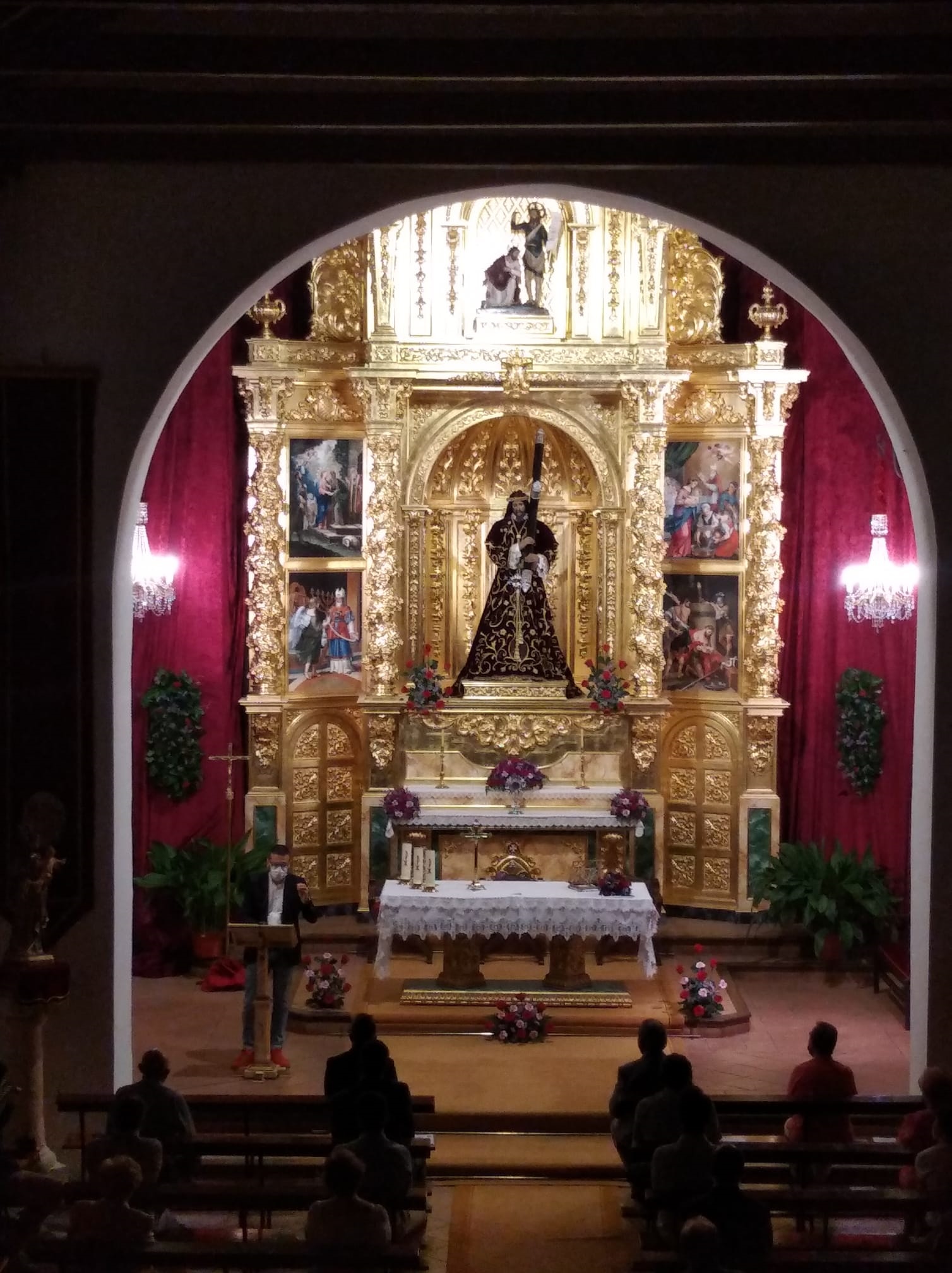 La ermita de San Juan, del siglo XVII, ha inaugurado su nuevo retablo. La Hermandad de Jesús de las Tres Caídas y María Santísima de la Esperanza se marcó hace tres años el proyecto de devolver a la iglesia su retablo, como el que se destruyó durante la Guerra Civil. Con este objetivo, su junta directiva encabezada por José Manuel Ruíz comenzó a trabajar en el proyecto que ha culminado con su presentación en la noche ayer, viernes. El acto comenzó con un minuto de silencio en recuerdo a todas las personas que han fallecido a causa del COVID-19.