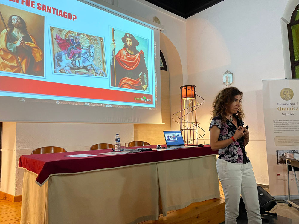 Dos grupos de 4º ESO y 1º Bachillerato del IES Antonio Calvin participaron en la conferencia con el nombre “El Camino de Santiago: una ruta llena de historia y de historias”. Ainoa Polo realizó un recorrido de manera didáctica por la historia del Camino de Santiago, a través de la conferencia. Hizo especial hincapié en la espiritualidad de la ruta, en la figura del peregrino y su evolución desde la Edad Media hasta la actualidad, así como el trazado de los diferentes caminos existentes a lo largo de la Península Ibérica.