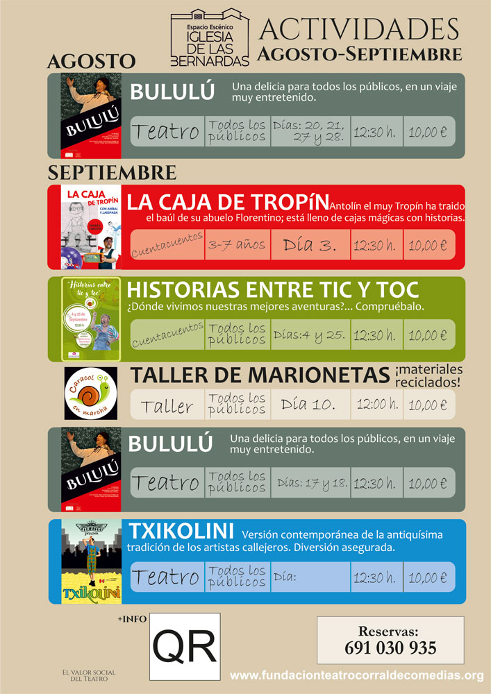 En septiembre irán pasando por el Espacio Escénico de las Bernardas espectáculos variados y divertidos con la siguiente programación para todos los públicos:
