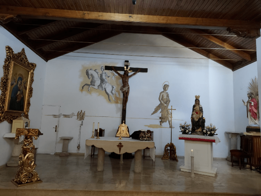 El altar de la ermita de san Pedro ha sido el lugar elegido para instalar esta pintura que se encontraba en la iglesia de las monjas dominicas, donada por una familia almagreña después de la Guerra Civil.