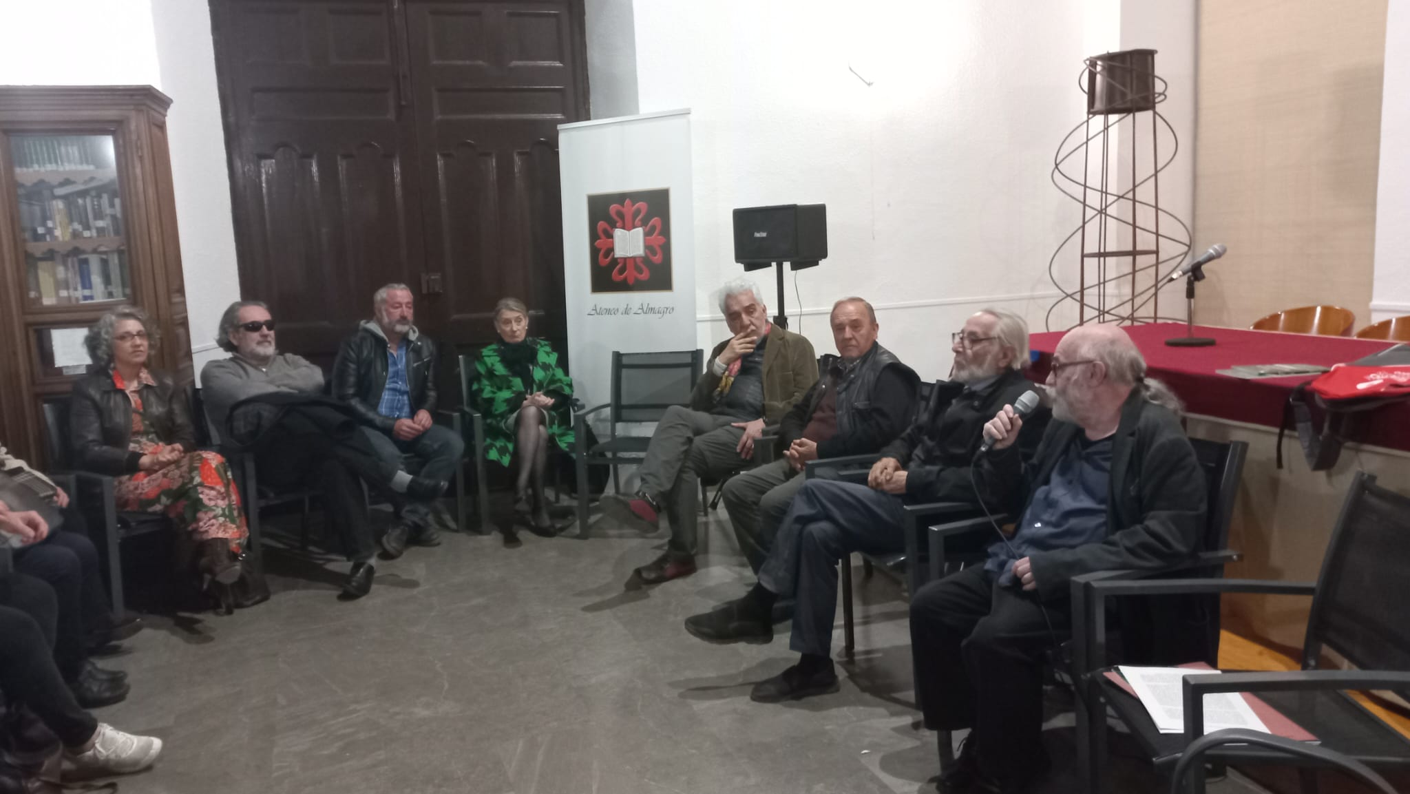 El Ateneo de Almagro acogió un interesante coloquio de la mano de Guillermo Heras, presidente de la Asociación Nacional de Directores de Escena. Una entidad que se formó hace 41 años que tiene fundamentalmente como objetivo apoyar todo lo relacionado con la dirección de escena y en la que participan los directores y directoras más importantes de toda España. Esta asociación realiza a lo largo del año toda una serie de actividades, como la organización de encuentros de tipo reflexivo sobre cuestiones del oficio, cuestiones de la relación de la dirección de escena y el del teatro con la sociedad. Actualmente tienen dos líneas de publicaciones, una revista trimestral y una colección de libros de teatro con las siguientes áreas: el ensayo, la teoría y la publicación de textos dramáticos de autores de todo el mundo a través de acuerdos con embajadas.