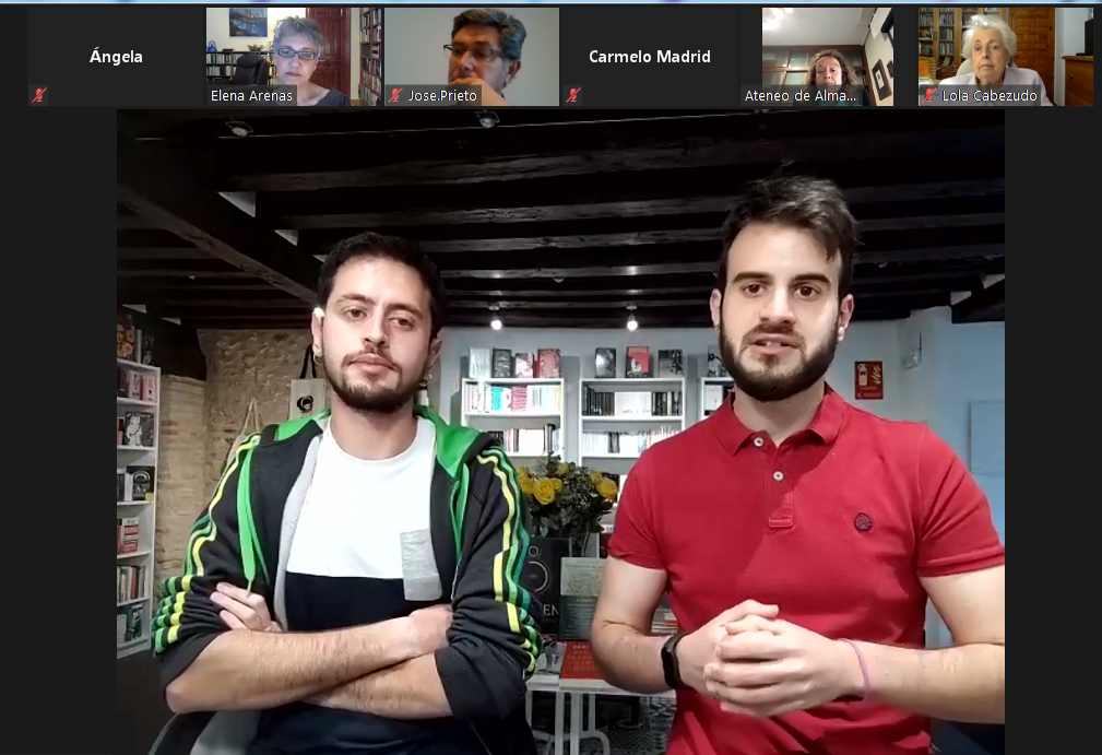 El Ateneo de Almagro ofreció este jueves la primera actividad programada en el mes de mayo, una presentación telemática del proyecto cultural y de emprendimiento de la Librería Macondo, protagonizada por sus promotores Álvaro Briñas Barba y Jaime García Parras, ambos libreros en este espacio cultural, situado en Calle Feria, 2, en Almagro.