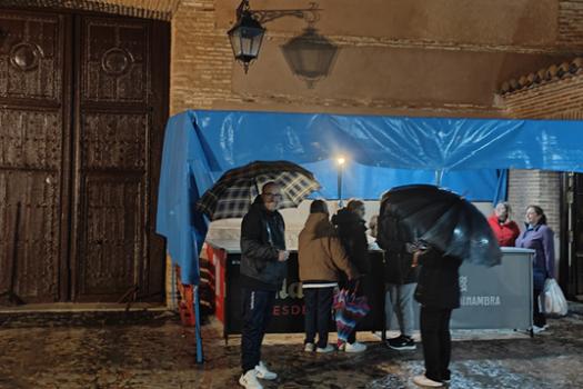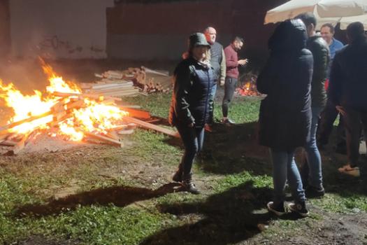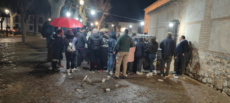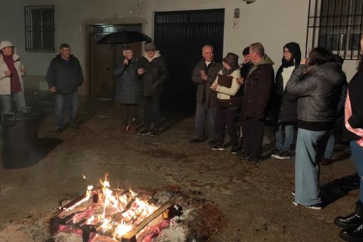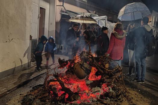 Este San Antón será recordado por la lluvia. Son muchas festividades del patrón de los animales con frío, con mucho frío, con niebla, nieve… pero pocos se recuerdan pasados por agua y que impidieran encender las hogueras correspondientes en la noche del 16 de enero. Por este motivo, este pasado martes hubo menos hogueras de lo habitual pero no por ello se dejó de celebrar esta especial noche en Almagro. Varias decenas de almagreños desafiaron a la lluvia y prendieron frente a las puertas de sus casas y solares la hoguera de San Antón. En total, siete grupos de amigos, vecinos y familiares se reunieron en distintos puntos de la ciudad y participaron del tradicional concurso en el que se premia la mejor hoguera, la hoguera más animada, la mejor limoná y el mejor somallao. Las ganas de disfrutar esta primera festividad de los Santos Viejos fue el punto común de todos los grupos participantes. Y es que San Antón es una de las fiestas más queridas en Almagro, una de las tradiciones más enraizadas que une a amigos, familiares y vecinos cuando todavía huele a Navidad. Prueba de que San Antón es una de las fiestas populares a que los almagreños no quieren renunciar es que, sabiendo de la previsión de lluvia, muchos adelantaron la hoguera a la noche del sábado.