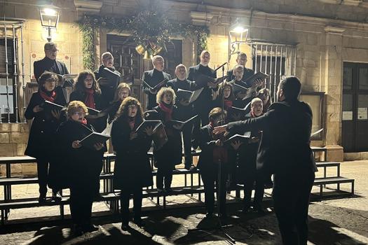 El Ayuntamiento de Almagro ha presentado esta noche su renovada iluminación y decoración navideña. La Coral Polifónica Orden de Calatrava ha puesto la nota musical a este especial momento que ha llenado la Plaza Mayor de vecinos de todas las edades.