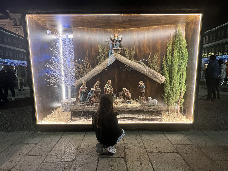 No falta el gran árbol que ilumina la Plaza Mayor, un símbolo de la Navidad en Almagro que siempre atrae a los visitantes. Asimismo, como el año pasado, el Nacimiento de Jesús se ha colocado en una vitrina expositiva junto a la nueva decoración floral.