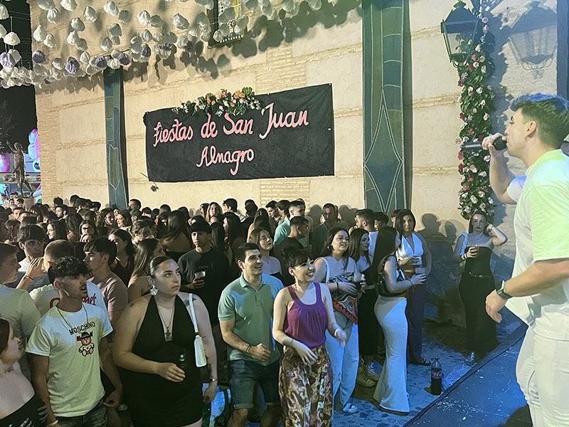 La noche continúo con la tradicional verbena en honor a San Juan, organizada por la Hermandad de Las Tres Caídas y la Virgen de la Esperanza, Por delante quedaron horas de diversión en familia y con amigos alrededor de San Juan, que cada año —y ya son siete— la hermandad celebra la onomástica de uno de sus titulares, rodeada de cientos de almagreños y visitantes. Esta fiesta popular se ha consolidado en el calendario de verbenas de la ciudad como una de las más esperadas y con mayor afluencia de público enmarcado en este fin de semana dedicado también al amor.