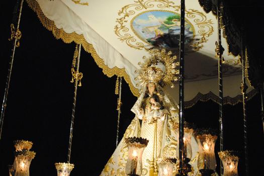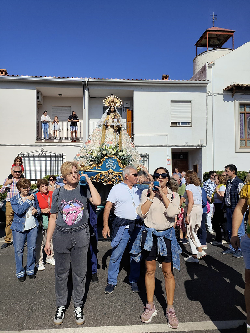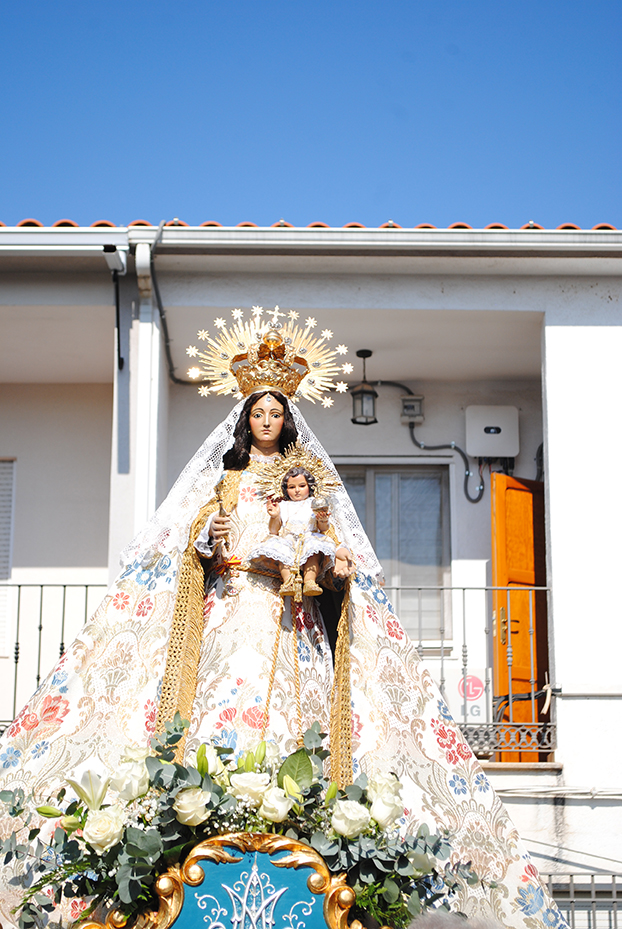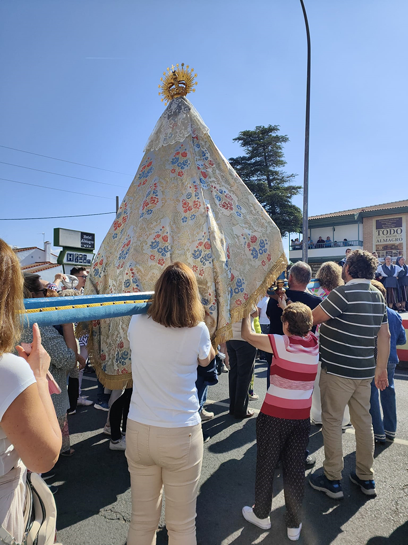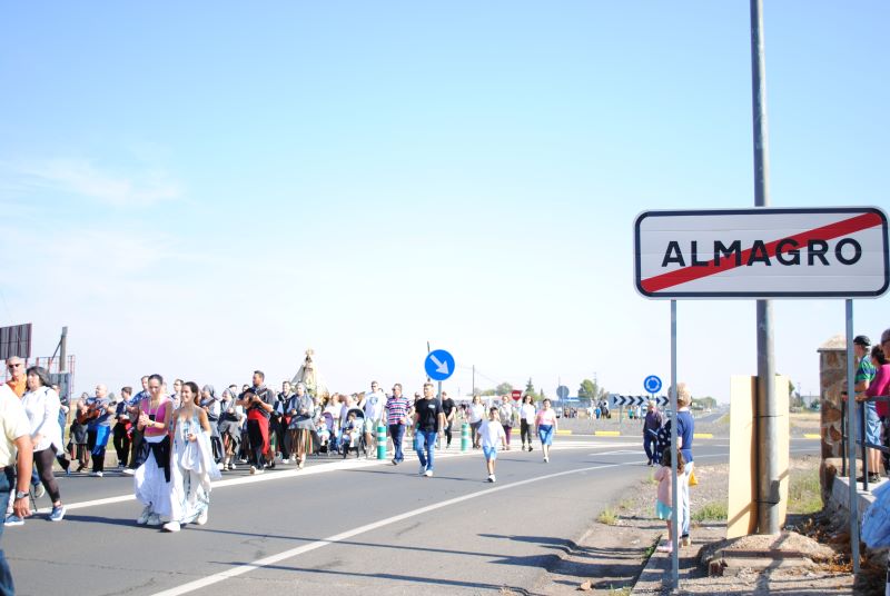 La Patrona ha regresado a Almagro arropa por sus vecinos y fieles. Como es tradición, su llegada ha sido anunciada por el sonido de los fuegos artificiales y del repique de la campana de la casa de la Virgen. La imagen de la Patrona ha llegado a la ciudad tras recorrer los ocho kilómetros que separa su santuario de Almagro, portada a hombros por almagreños de todas las edades. Y es que son muchos los devotos de la Virgen de las Nieves que manifiesta a la Hermandad su deseo de portarla durante el recorrido. Una distancia con parada en la localidad vecina de Bolaños de Calatrava. Miembros de las hermandades de La Virgen del Monte y del Cristo de la Columna llevaron a la Virgen almagreña por las calles de Bolaños.