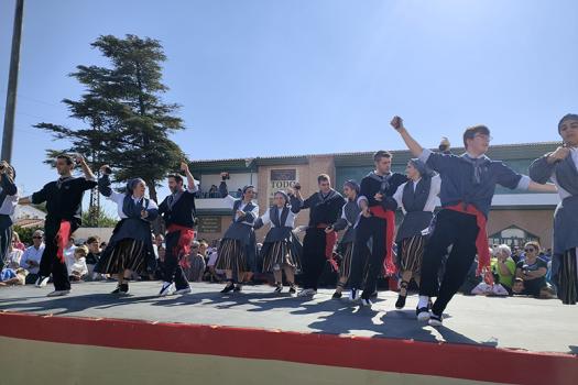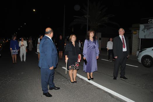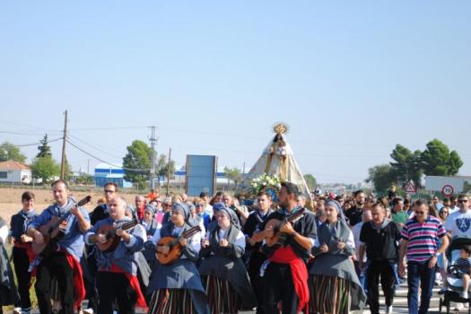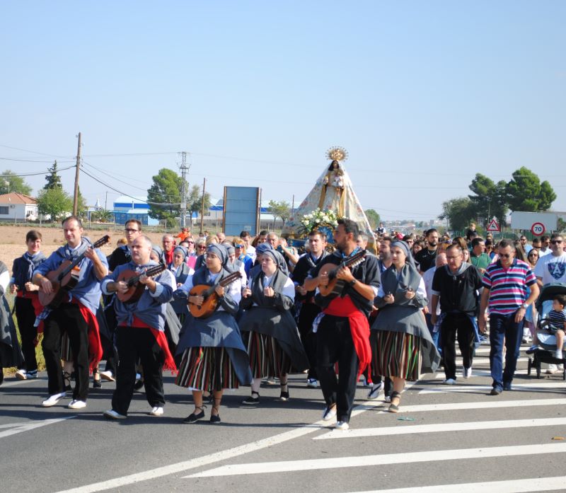 Algo más tarde de las 12:30h, la Patrona llegaba a su ciudad acomañada de 'Tierra Roja'. Nada más llegar, los componetes de la asociación folklórica fue la encargada de dar la bienvenida a la Virgen de las Nieves con su baile y cante.