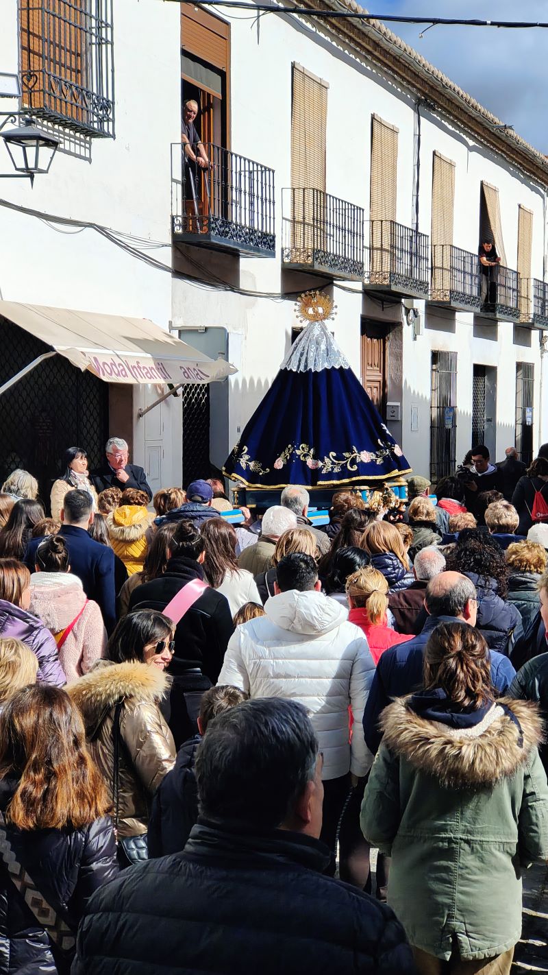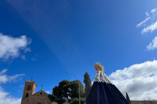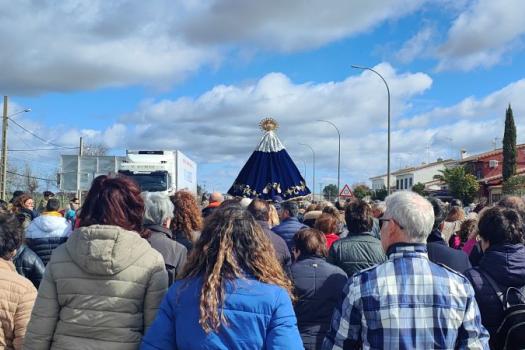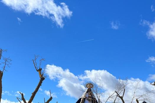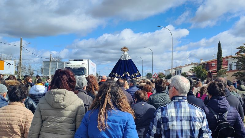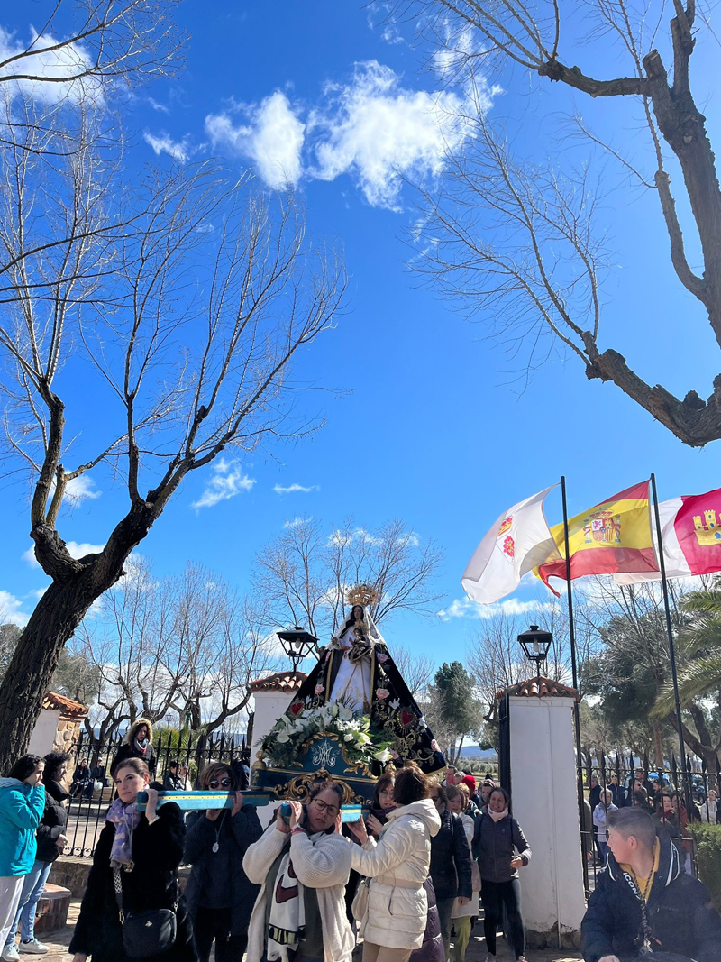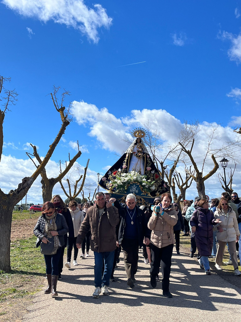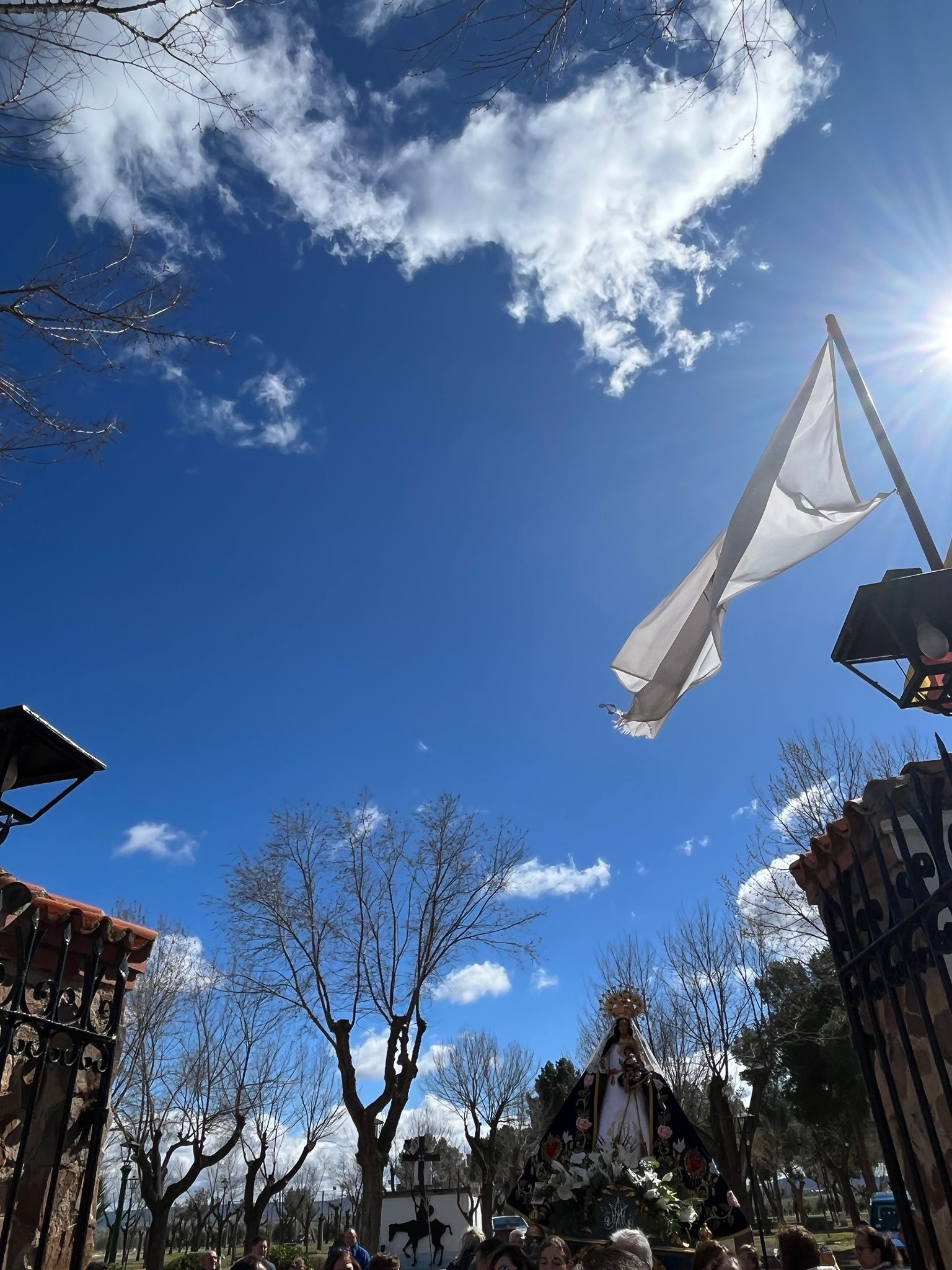 El primer domingo de marzo es especial en Almagro. La Patrona, la Virgen de las Nieves despide su estancia invernal en su pueblo para trasladarse a su otra casa, su santuario situado a escasos 8 km de su ciudad. Esta mañana, han sido muchos los almagreños que, a pesar de desapacible día, han acompañado a su Virgen, a su imagen portada en andas, hasta su ermita.