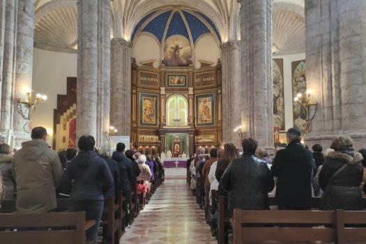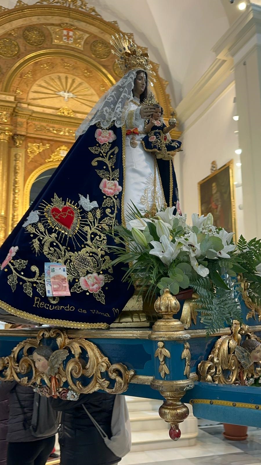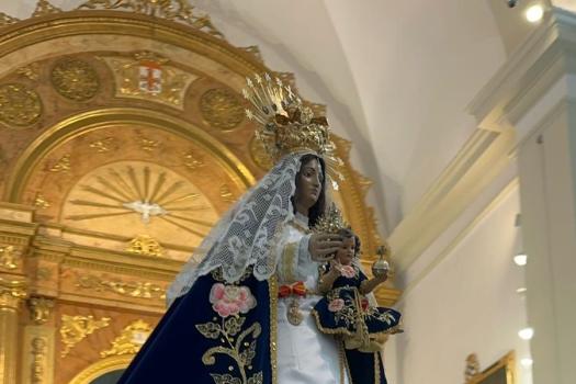 La jornada ha comenzado con toque de campanas y misa en su honor en la iglesia Madre de Dios, donde ha estado los últimos cinco meses. Autoridades municipales, representantes de los cuerpos de seguridad del Estado y de las hermandades de la ciudad han asistido al acto religioso junto a numerosos vecinos y devotos de la Patrona.