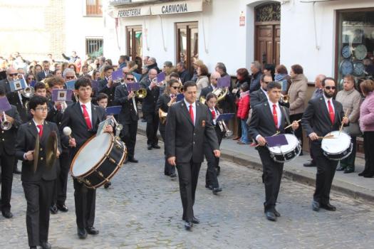 Parada en la localidad vecina de Bolaños de Calatrava. Su alcalde, Miguel Ángel Valverde ha estado a su llegada a la parroquia de San Felipe y Santiago.