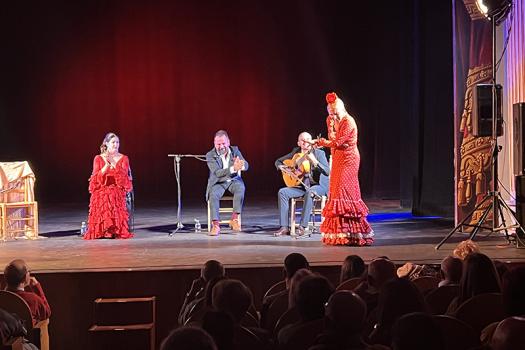 Así, sobre el escenario, la artista ciudadrealeña estuvo acompañada por el cantaor Quintín Zamora, la guitarra de Jesús Peñalver, el baile de Carmen Maroto y los versos del poeta Antonio Hernández.