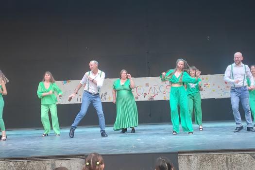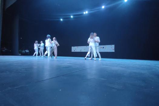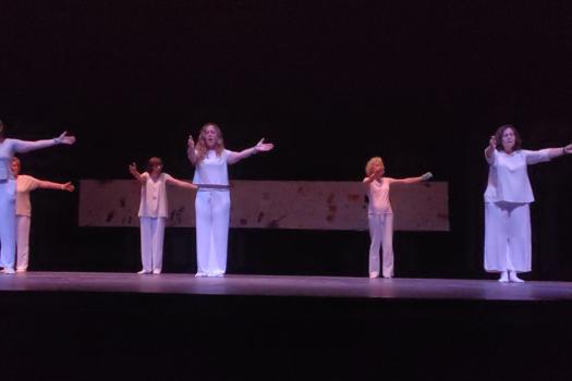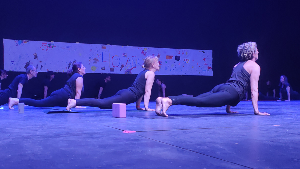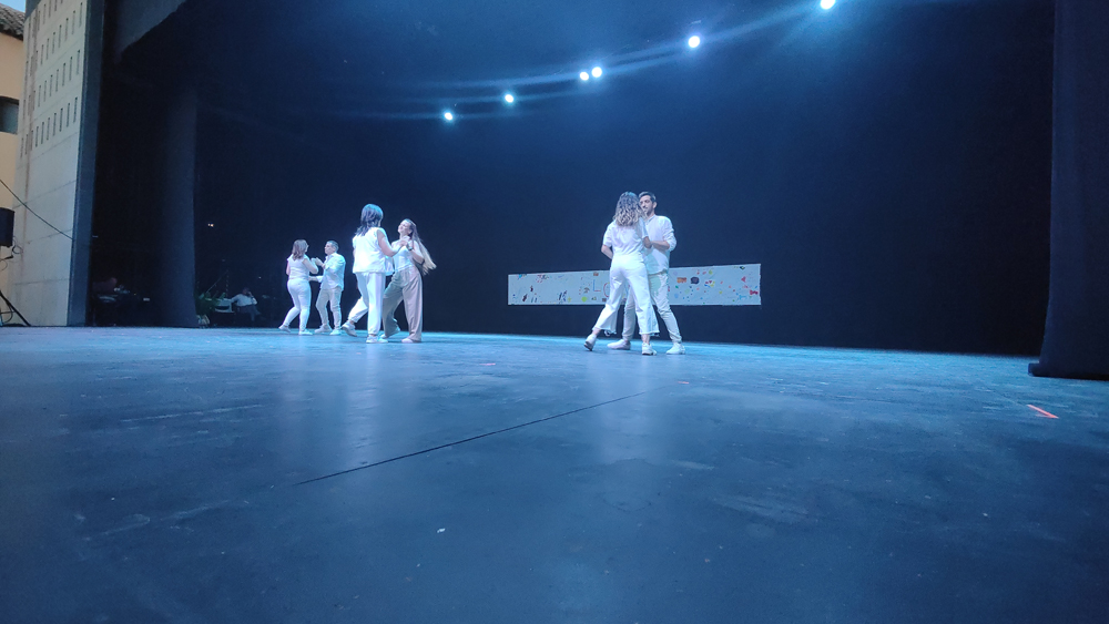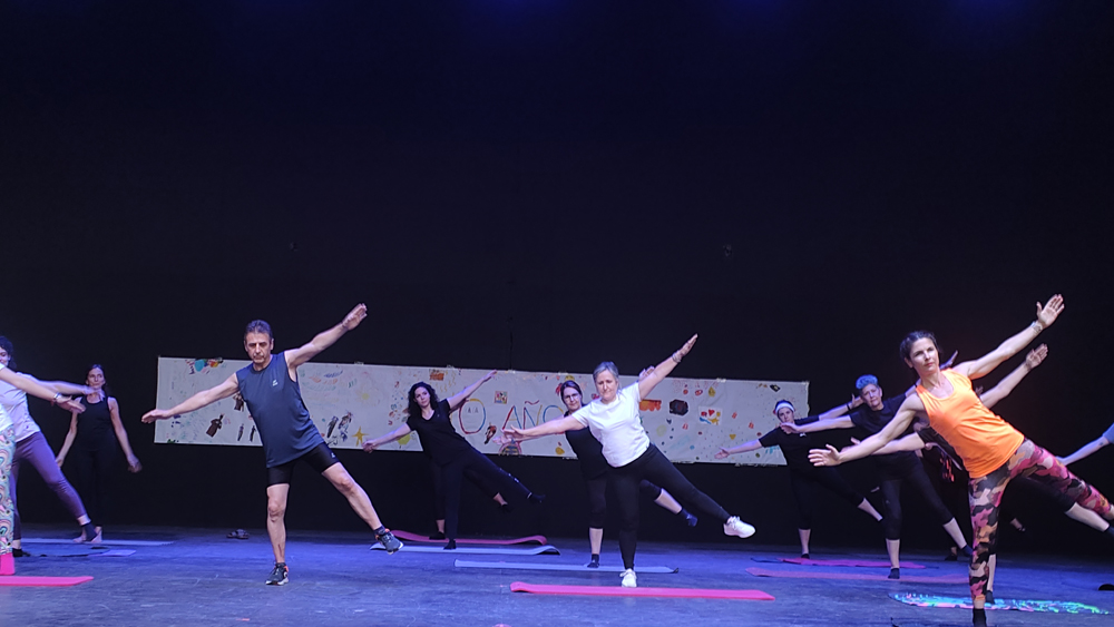 Por las tablas del ahora Teatro Adolfo Marsillach, sede de la Compañía Nacional de Teatro, pasaron pequeños y mayores para bailar, desfilar o invitar a meditar. Así, la muestra comenzó con las niñas que asisten al curso de zumba kids, luego llegaron las peques de baile moderno de los tres cursos que imparte la UP. Todos los niños y niñas de estos cursos de baile infantil finalizaron su participación en la gala de clausura con un baile conjunto. Después, fue el turno de conocer algunas de las prendas realizadas en el curso de patronaje y así, poco a poco, durante las dos horas de muestra, los participantes de gimnasia de mantenimiento, de baile en línea, en pareja, pilates, yoga, meditación y mindfulness pasaron por el escenario en el día más caluroso de este mes de mayo.