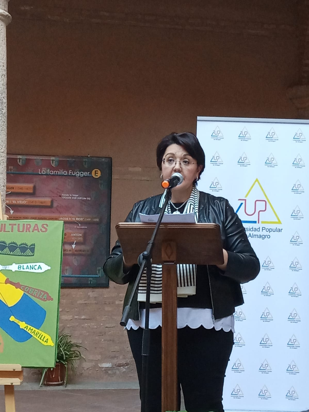 A continuación tomó la palabra, Encarnación Asensio Rubio, coordinadora de Cultura de este Ayuntamiento, primera directora y fundadora de la Universidad Popular de Almagro. Asensio hizo un recorrido de los primeros años de gestación de la UP almagreña hasta su puesta en funcionamiento. Destacó el papel que desempeñaron los gobernantes locales durante los primeros años de la UP, su interés y buen hace fue esencial para la consolidación de la UP, “dieron a la educación y a la cultura el protagonismo que una sociedad debe tener para desarrollarse”. Habló también de la aportación también esencial de los monitores y profesores al desarrollo del a UP, “han puesto su conocimiento y su experiencia, convirtiendo la UP en punto de encuentro de la participación social en el municipio”. Recordó a dos monitoras claves de esa primera época, Victoriana Prieto, monitora de encaje que enseñó a cientos y cientos de niñas y Luisa Chaves, monitora de corte y confección.