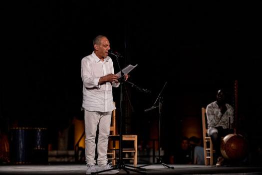 Con la entrega del premio, la Plaza Mayor ha recibido a Lluís Pascual que ha recitado un poema de Federico García Lorca y de Salvador Espriu. Como colofón, una representación de la diversidad de las compañías que participarán en el Festival, ha subido al escenario Uruguay, Costa de Marfil y Galicia y han sonado los diferentes acentos del teatro clásico.