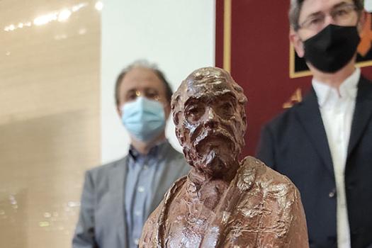 La recepción de la obra se llevó a cabo en la sede ateneísta en un encuentro privado dada la imposibilidad de celebrar actos con presencia de público en la actual situación sanitaria de la localidad. José Antonio Prieto, presidente del Ateneo, agradeció «efusiva y sinceramente» su trabajo a López-Arza, «que nos ha acompañado en la trayectoria vital del Ateneo desde el primer momento con disponibilidad y generosidad plenas. Tienes el afecto, el cariño y la gratitud del Ateneo a perpetuidad», aseguró Prieto, quien recordó que el escultor fue el autor del busto del Clavero que ocupa la plaza de la iglesia de San Bartolomé.