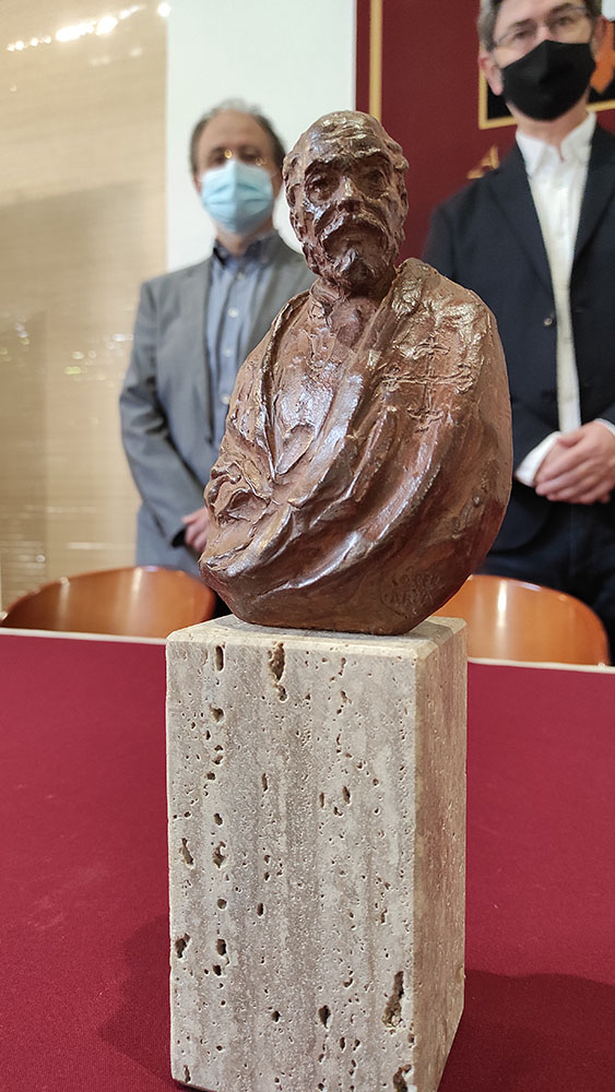 El pasado 12 de octubre, fecha emotiva por coincidir con la constitución oficial del Ateneo de Almagro en el año 1999, se produjo la entrega de una bellísima escultura de manos de su autor, el escultor José Antonio González López-Arza, al presidente y algunos de los directivos del Ateneo. Esta nueva estatuilla retrata en un pequeño busto a Fernando Fernández de Córdova, Clavero de la Orden de Calatrava y fundador de la Universidad de Almagro en el siglo XVI, y servirá a partir de ahora como máximo reconocimiento a personas o instituciones por su trayectoria cultural que entregará el Ateneo de Almagro.