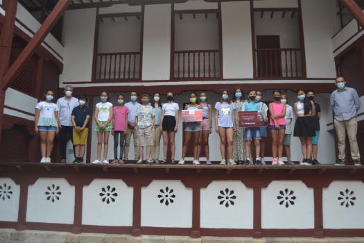 Tras la grabación, el equipo de RNE, los chavales y sus profesores se hicieron una foto en el Corral de Comedias. Precisamente en este espacio se desarrolla el trabajo ganador.