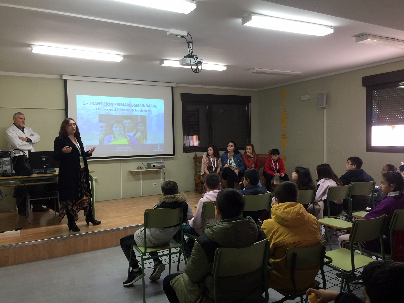 El instituto Antonio Calvín llevo a cabo tres días de puertas abiertas. El pasado jueves 6, a las 17:00h su salón de actos se llenó de familias interesadas en que sus hijos cursen 1º ESO en este centro el año próximo, tras finalizar la etapa de Primaria en distintos colegios de la localidad, así como en Granátula de Calatrava y Valenzuela de Calatrava. Un grupo muy numeroso de profesores del Instituto estuvieron presentes en esta reunión, apoyando así la labor de todo el claustro en esta Jornada de Puertas Abiertas para las familias. El director del Centro, Miguel Cecilio, inició la charla agradeciendo a las familias como al profesorado el interés mostrado con su presencia. Después tomaron la palabra la orientadora, los jefes de estudios, varios profesores, la presidenta del AMPA, así como un grupo de alumnos de 1º ESO que expusieron su experiencia positiva durante este primer curso en el centro. Tras acabar la charla, los asistentes visitaron las instalaciones del Centro: aulas, talleres, pabellón, laboratorios, etc. Para acabar la jornada, el AMPA invitó a unos aperitivos que facilitaron el diálogo entre los presentes y los profesores del instituto.