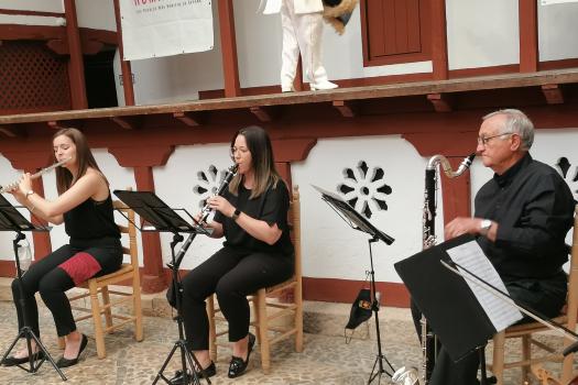 Esta mañana la pareja formada por Ana Prieto y Raúl Calzado de la Escuela de Baile de Raúl de Almagro han sido los primeros en bailar en la ciudad encajera. Miembros de la Banda de Música de Almagro y alumnos de la Escuela municipal han interpretado el vals de la Tierra.