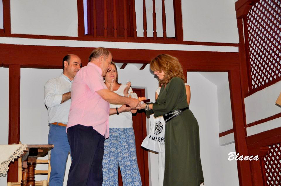El concejal de Cultura, Dionisio Muñoz, hizo entrega a los grupos invitados de teatro de aficionado de un obsequio en agradecimiento a su presencia en Almagro.