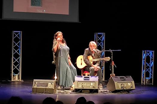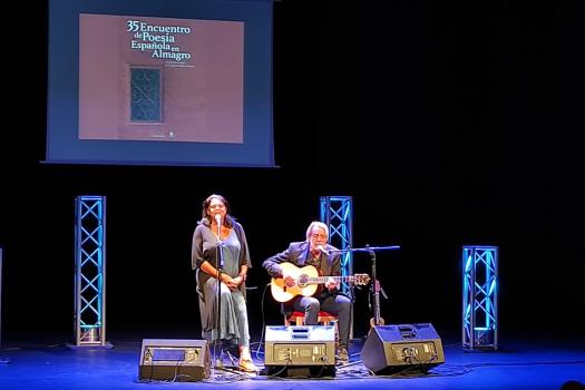 El cantautor extremeño, que llegó de niño a vivir a Madrid en la década de los 60 del pasado siglo, ha ido enlazando canciones y poemas durante más de hora y media de recital. Los versos, en los que cuenta su vida, su infancia enraizada con la España franquista que le tocó vivir y que ha recitado de memoria durante más de 15 minutos, han recibido los aplausos más emotivos de la noche. Acompañado de Lourdes Guerra ha interpretado también varios temas a capela como la canción homenaje a la cantautora Violeta Parra. Se despedía del publico almagreño con la el poema “Que fue de los cantautores” de su anterior trabajo.