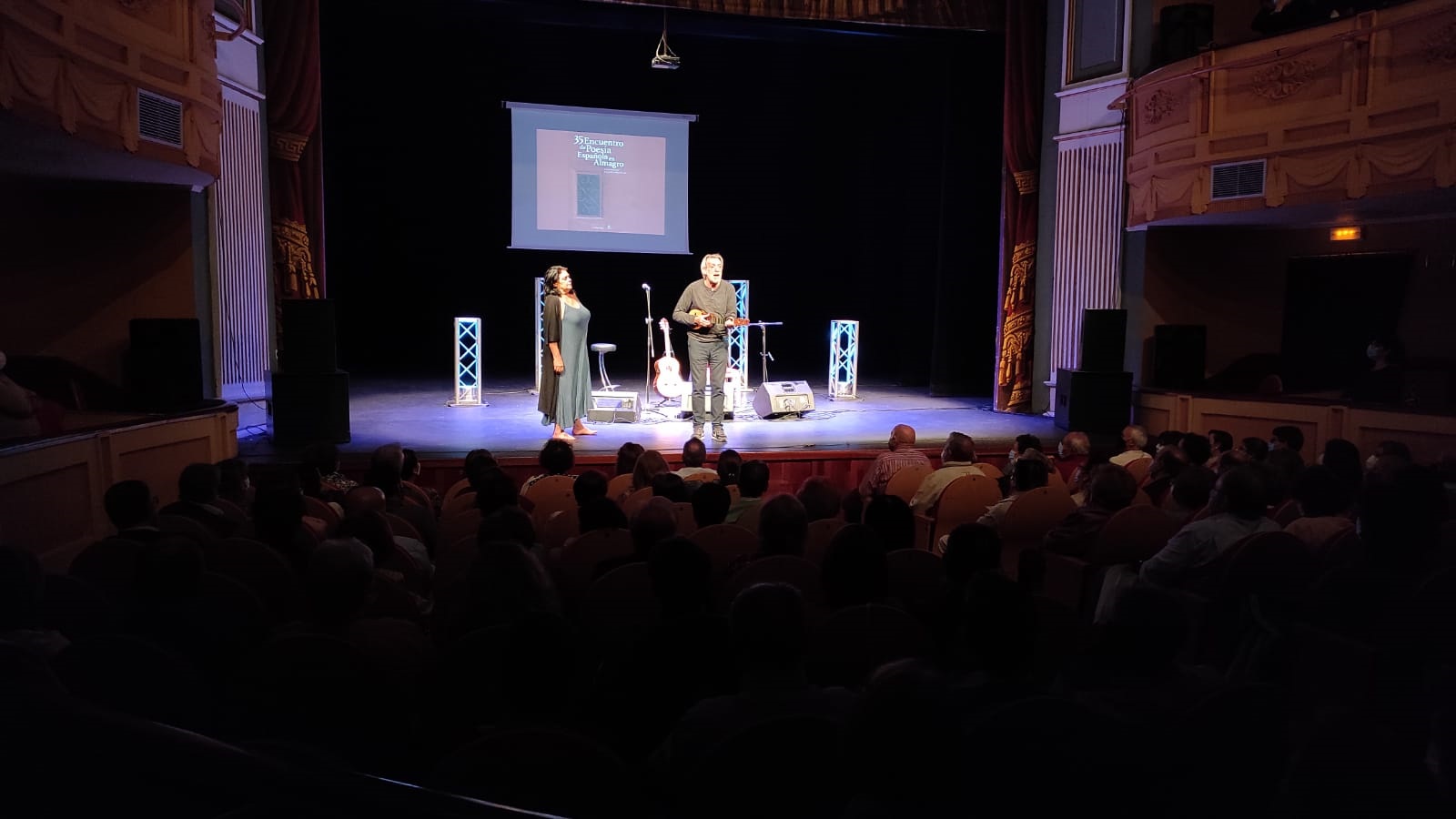 Aplausos y más aplausos en la segunda jornada del 35 Encuentro Nacional de Poesía Española de Almagro. El responsable de llenar el Teatro Municipal y de recibir la ovación del público ha sido Luis Pastor. Hace dos años, se subía también al escenario del Teatro Principal de la ciudad encajera en la que fue la trigésima cuarta edición del encuentro nacional. Esta noche, ha vuelto a emocionar al público con los temas de su último trabajo La Paloma de Picasso (abril 2020) “el paraguas” en el que ha agrupado canciones que estaban sueltas y poemas de grandes poetas como Miguel Hernández o Luis García Montero. Un disco con el que reivindica la paz a través de la música y la poesía en estos tiempos de intolerancia y xenofobia.