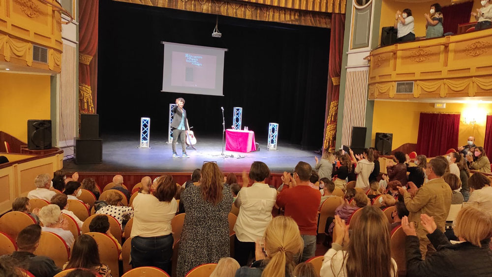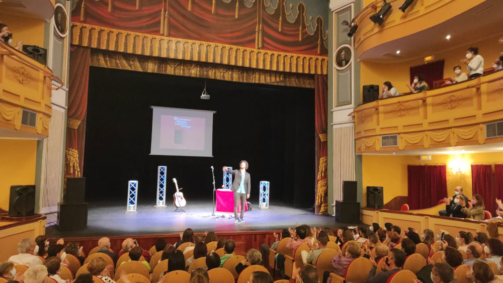 El músico y poeta comenzó con su habitual humor “no va a ser un recital de bajón, me he vuelto un tío optimista durante la pandemia” en relación a muchos de sus poemas publicados en las que la tristeza, el desamor y el desasosiego están muy presente, palabras con las que los asistentes contestaron con risas.