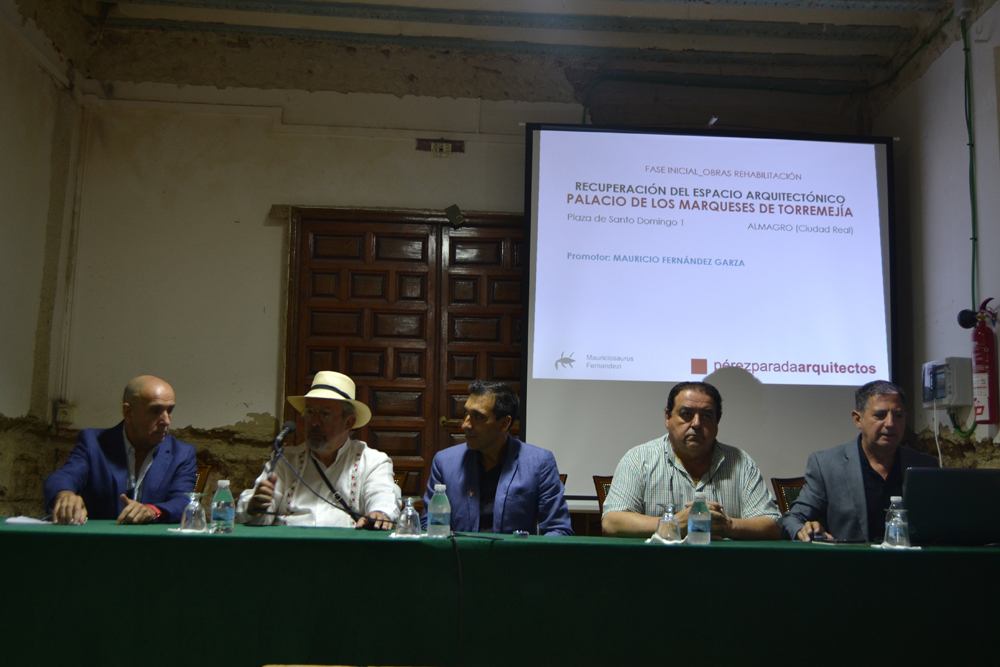 El empresario mexicano Mauricio Fernández Garza ha presentado hoy el proyecto de restauración que llevará a cabo en el Palacio de los marqueses de Torremejía. La cita de hoy era muy esperada. Periodistas, aficionados al arte, conocedores del patrimonio cultural de Almagro, profesionales de la cultura y curiosos en general querían conocer qué se estaba haciendo en el palacio, que hasta hace unas décadas fue la escuela hogar de muchas niñas de la provincia y hasta hace 4 años residencia de una comunidad de monjas dominicas.