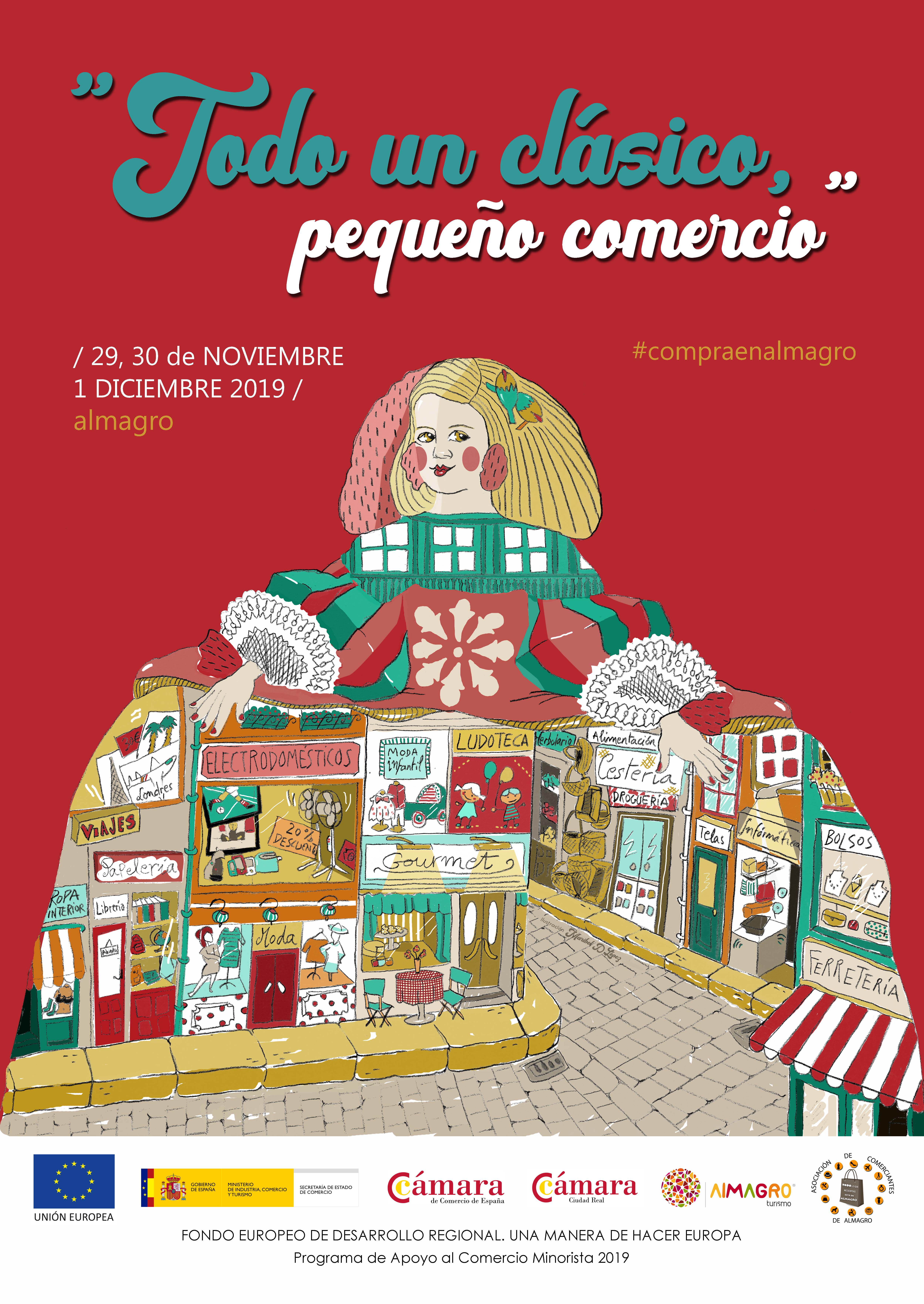 Los establecimientos comerciales que participan en “Todo un clásico, pequeño comercio” son Refugiarte, moda y complementos; Lencería Carmen; El Rincón Verde herbolario; J. Adán electrodomésticos Master Cadena; Anai, moda infantil; ferretería Carmona; El Baúl de Iris, moda y complementos; Letras, papelería; Nieves, moda y complementos; Coquett@, droguería y perfumería; Run Travel, agencia de viajes; Concha’s atelier, moda y complementos; Bohemia, librería y papelería; Tecnocom, informática y telefonía; Cestería y productos manchegos Juli; La Corrala Almagro, productos típicos; Huertas, moda; Textura de queso, tienda gourmet; Maimen boutique; Mi kasika, moda infantil y la ludoteca La Comedia.
