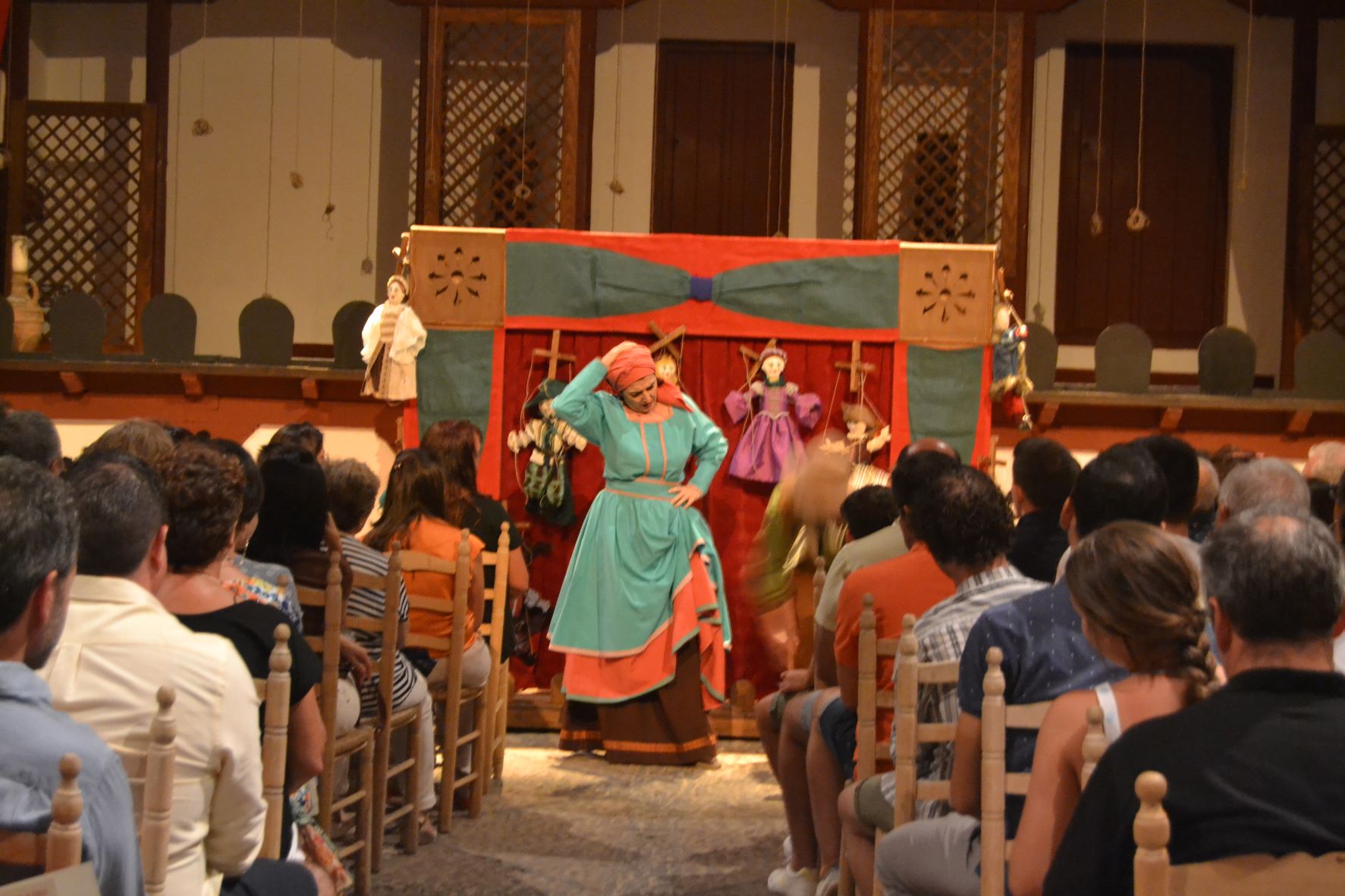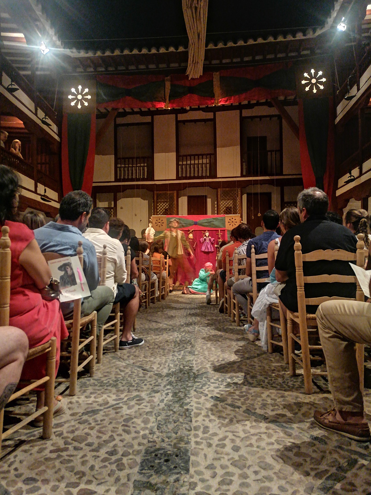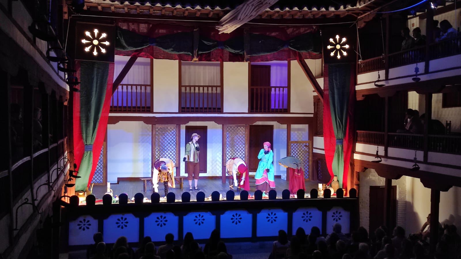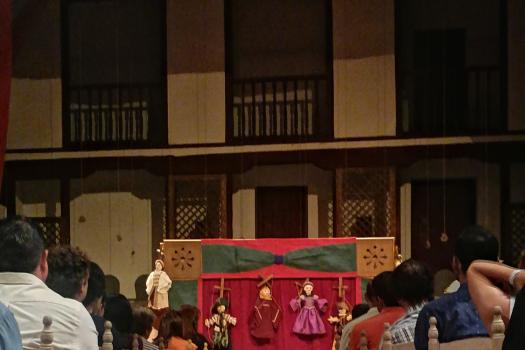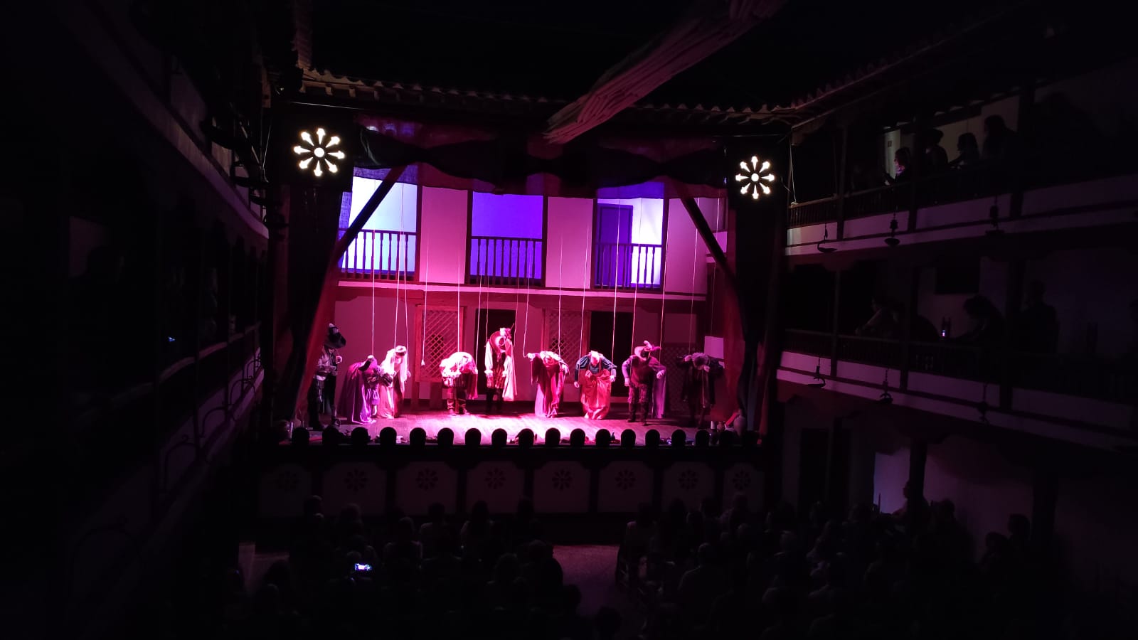 Ayer, el grupo de Tomelloso pudo subirse a las tablas del histórico corral, “un lujo” como fue calificado por su director, Miguel Ángel Berlanga. Carpe Diem presentó una adaptación de “El caballero de Olmedo” representado por una de esas compañías que recorrían las plazas de los pueblos para contar historias. En este caso con los títeres de Marcela y Pelayo. Unos títeres que se humanizan y sobre el escenario son Doña Inés, Fabia, Don Alonso, Tello… los personajes de El Caballero de Olmedo que ya convertidos en carne y hueso dan vida a la tragedia de Lope de Vega.