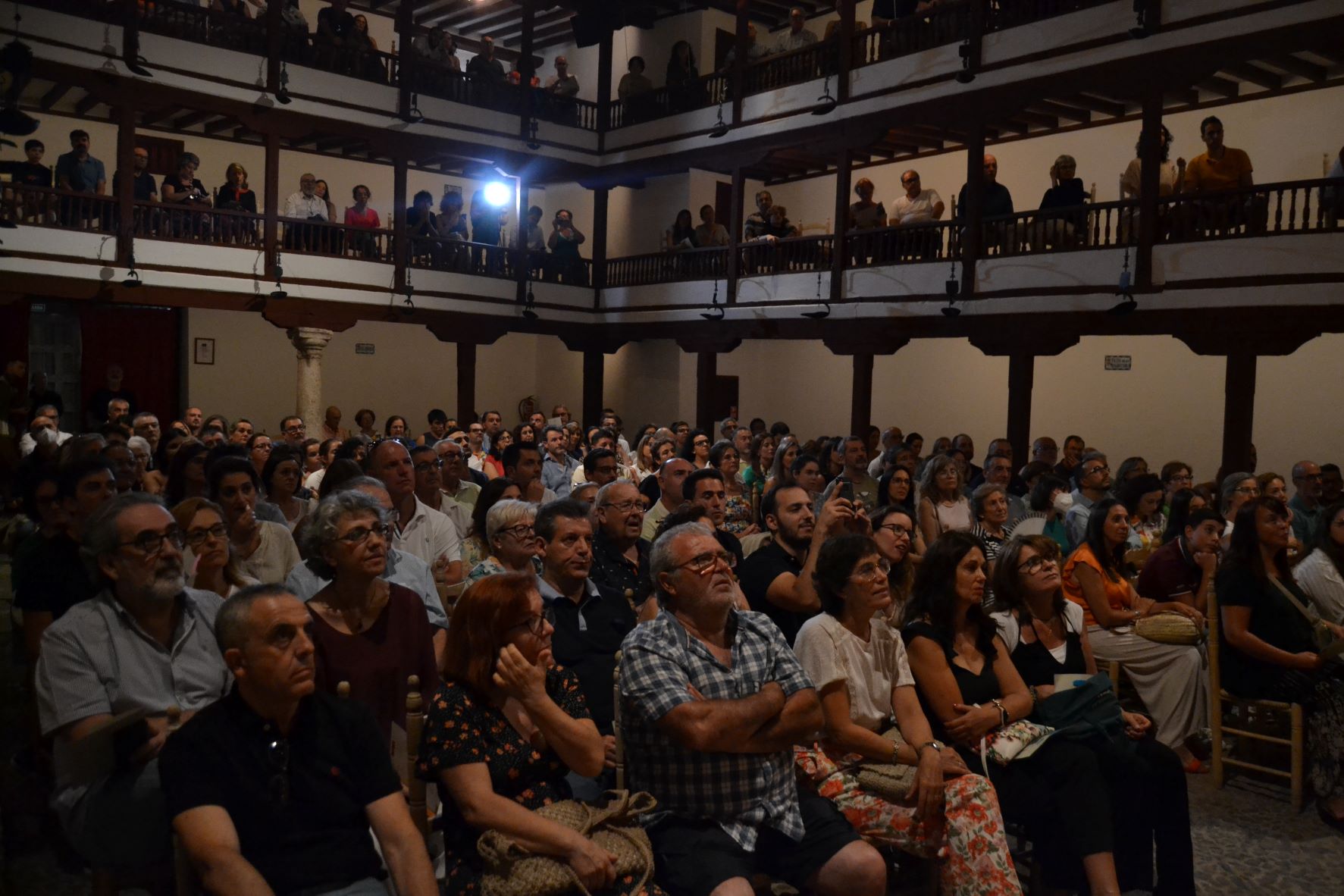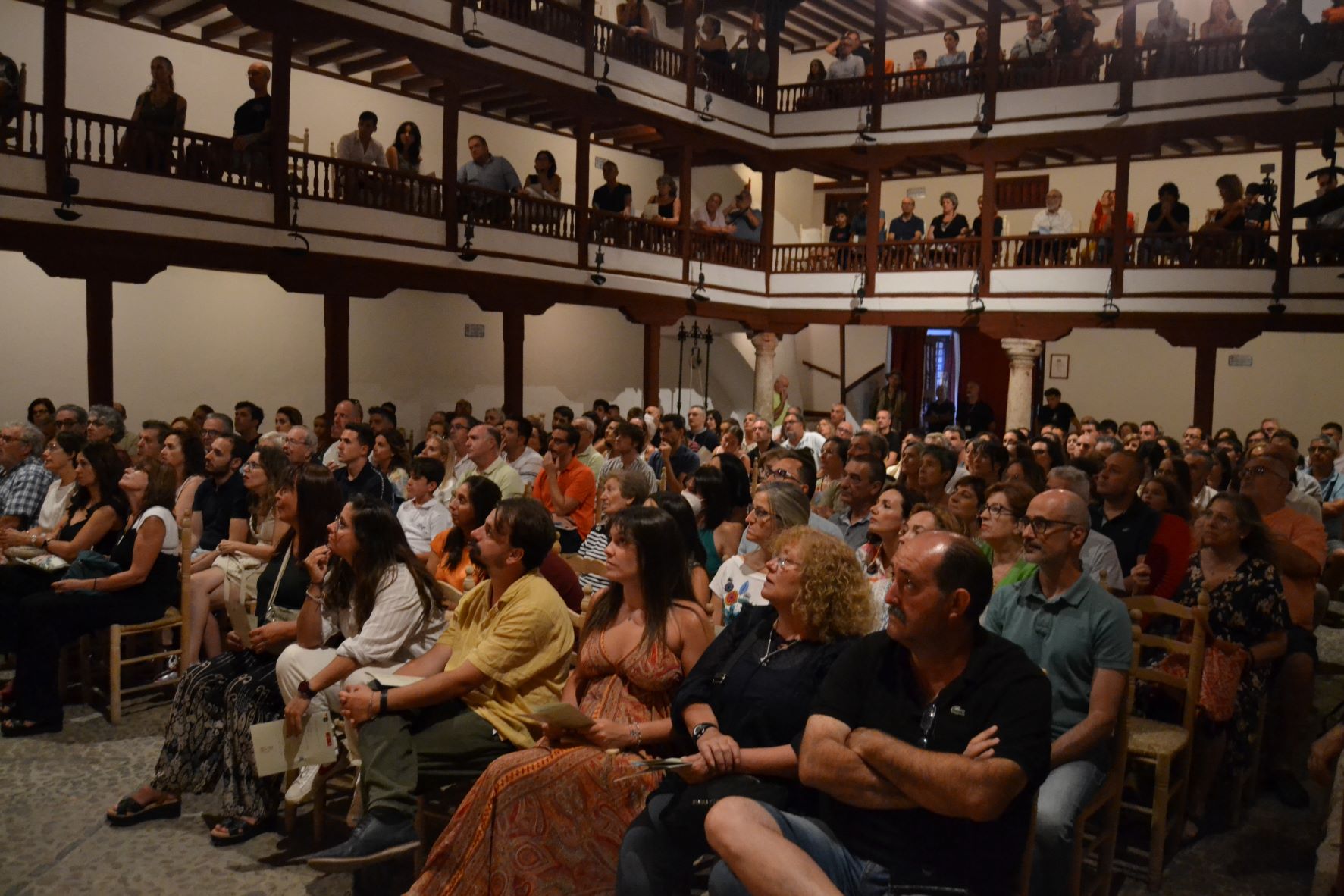 Ya solo faltaba que el público respondiera a la nueva iniciativa y así fue. El primero de los tres finalistas del Certamen nacional, el grupo Carpe Diem Teatro de Tomelloso fue recibido por un Corral de Comedias lleno, sin sillas de enea vacías, excepto las pocas que, por distintos motivos a última hora, sus ocupantes no pudieron asistir.