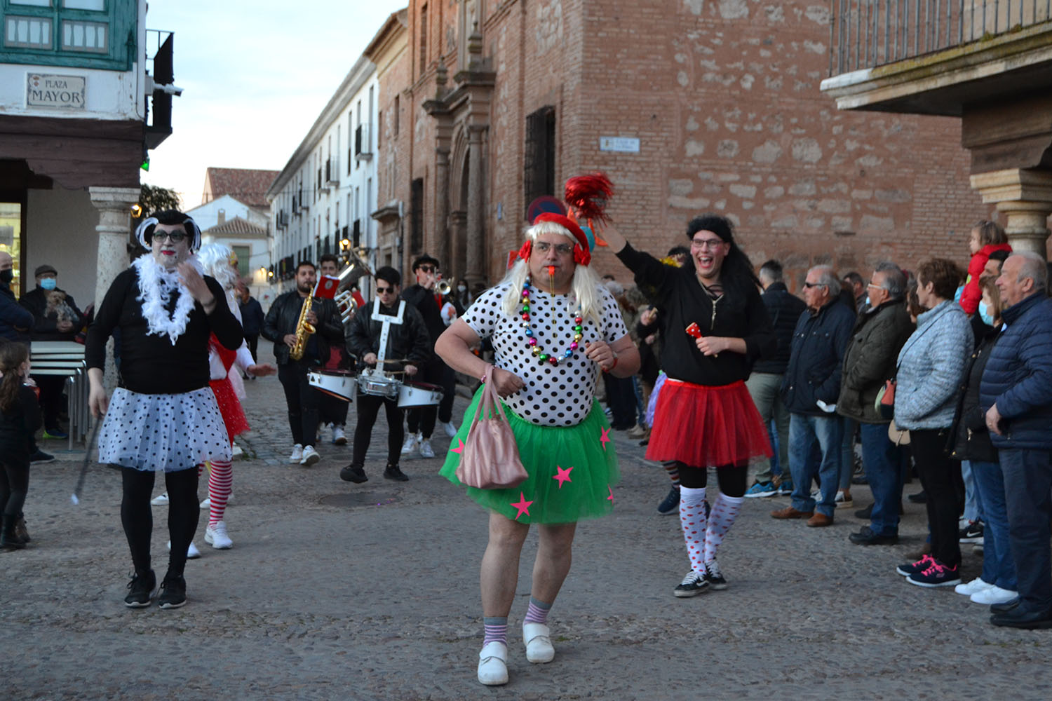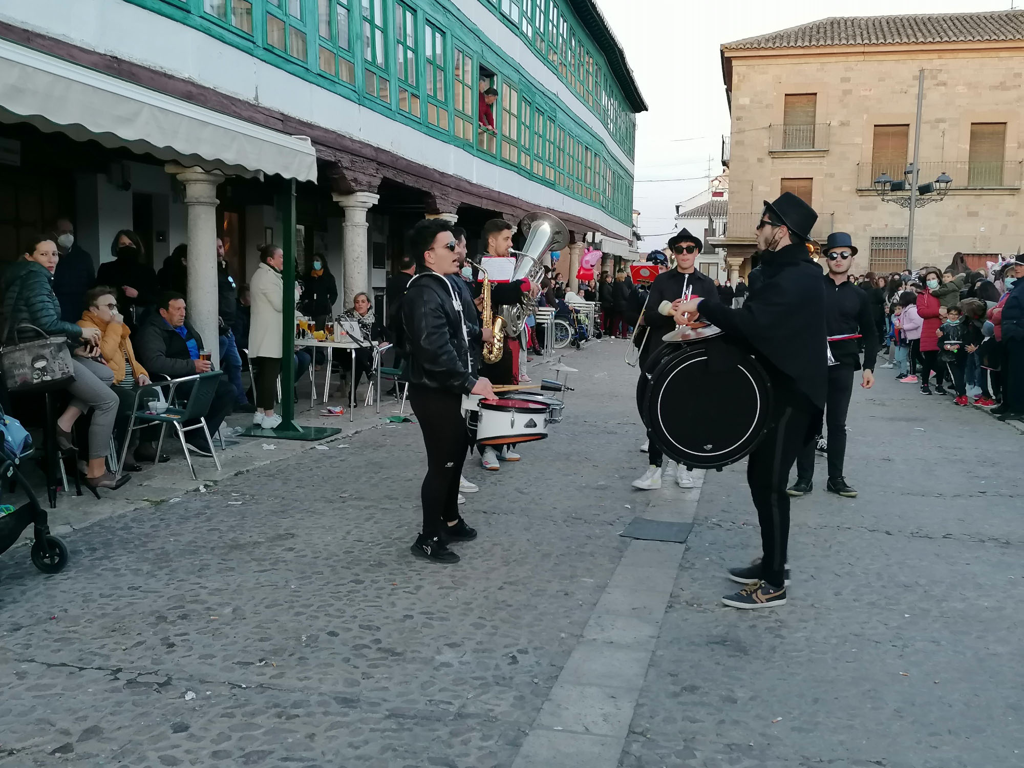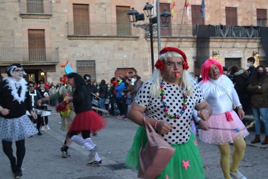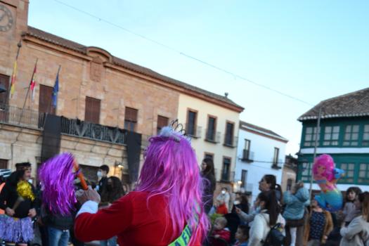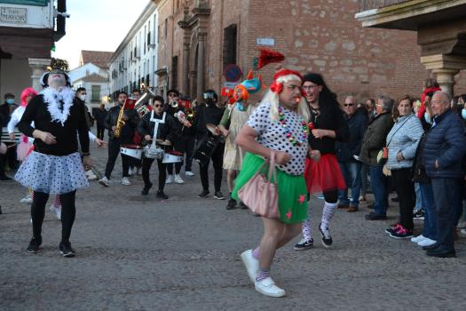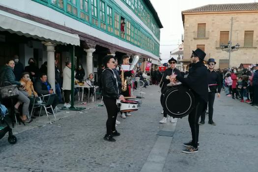 La música de Los Desmadraos y fuegos artificiales han puesto fin al penúltimo de los actos del Carnaval de Almagro. El sábado, la Plaza Mayor volverá a llenarse de máscaras, carrozas y disfraces del desfile regional de Carnaval 2022.