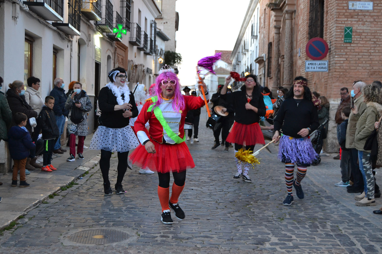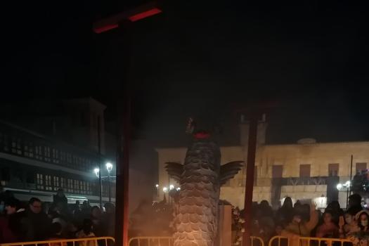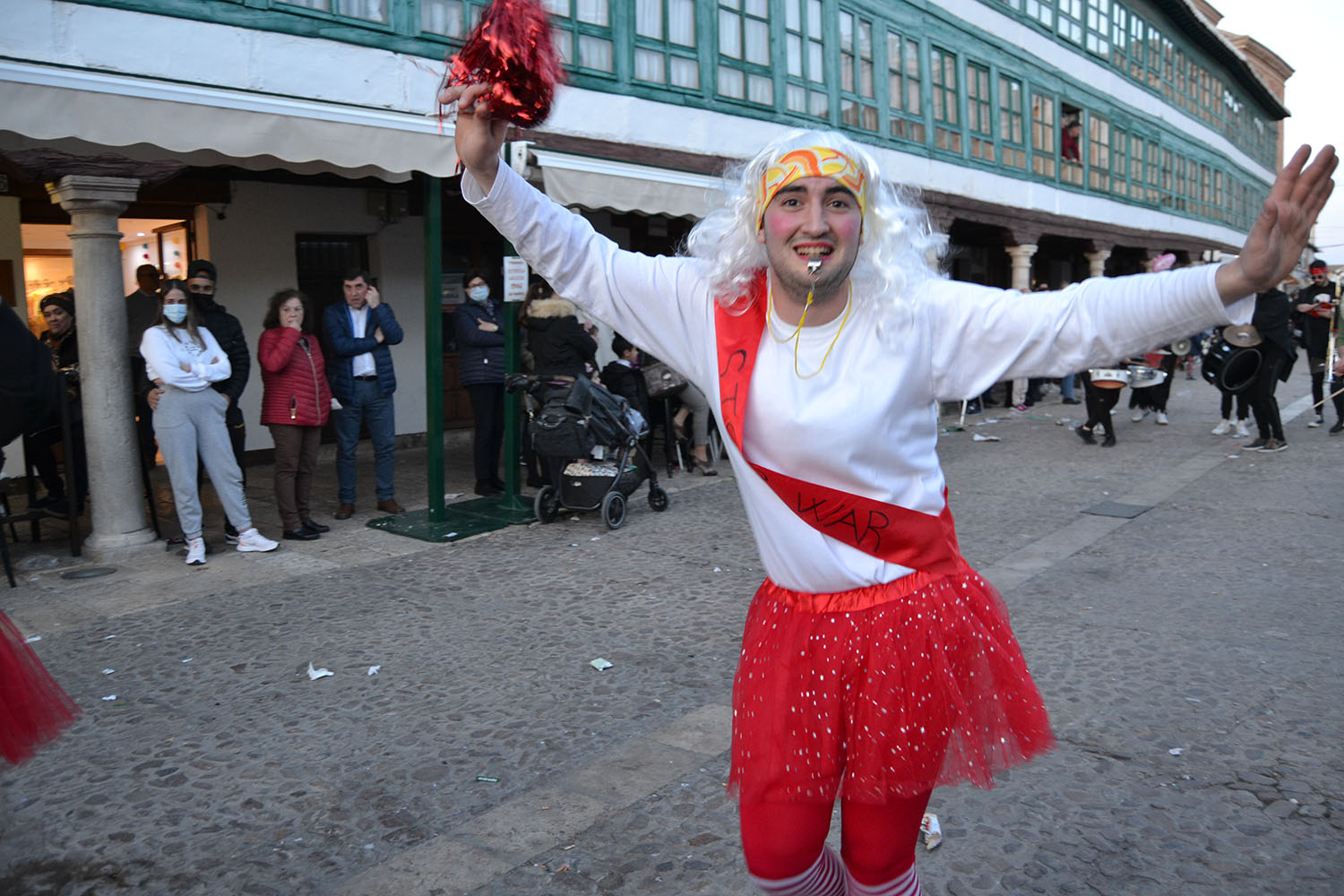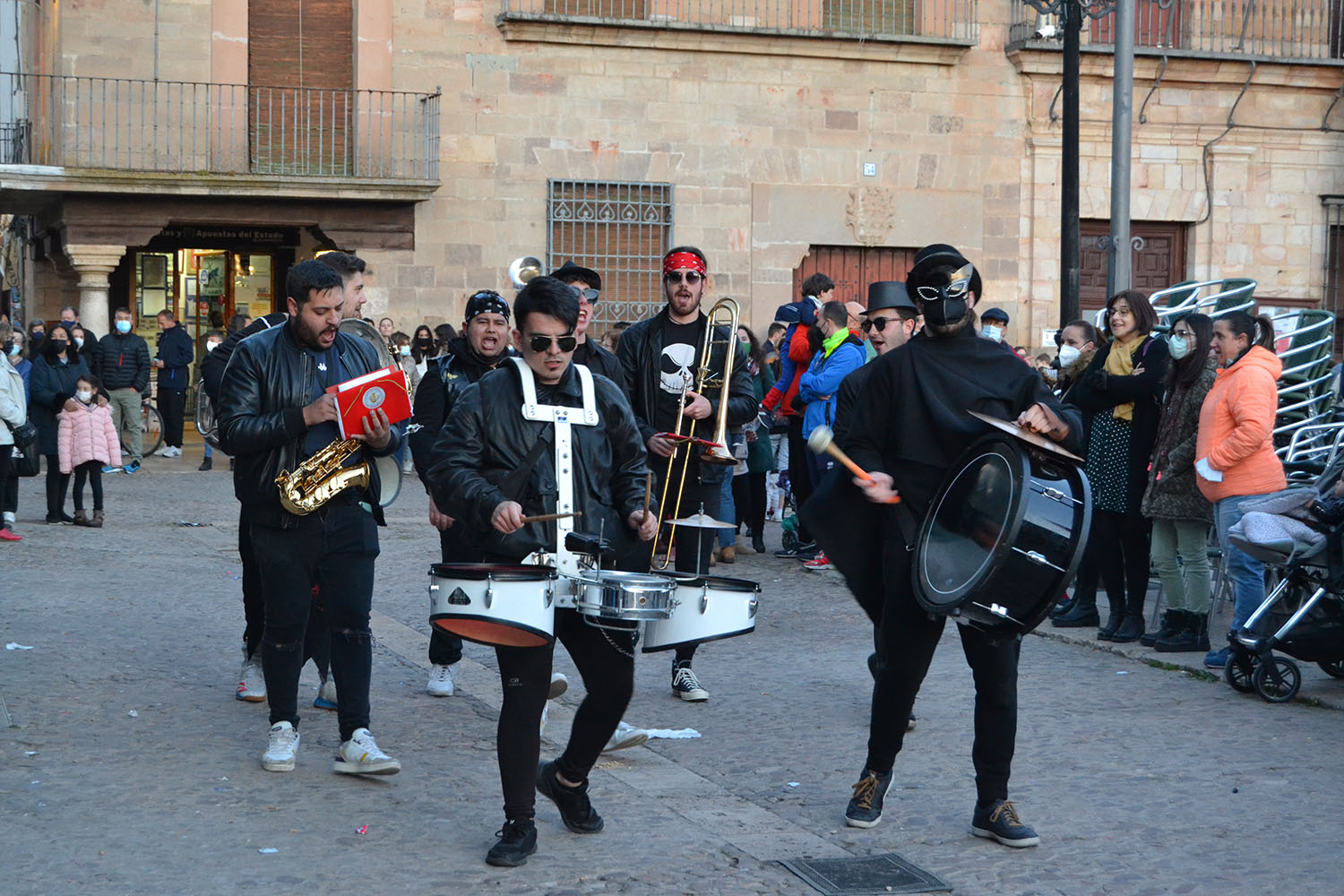 La música de Los Desmadraos y fuegos artificiales han puesto fin al penúltimo de los actos del Carnaval de Almagro. El sábado, la Plaza Mayor volverá a llenarse de máscaras, carrozas y disfraces del desfile regional de Carnaval 2022.