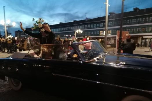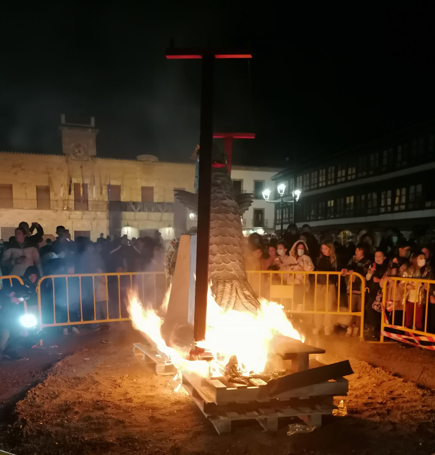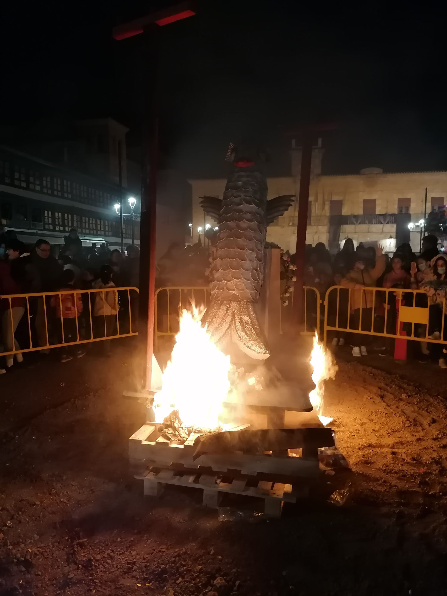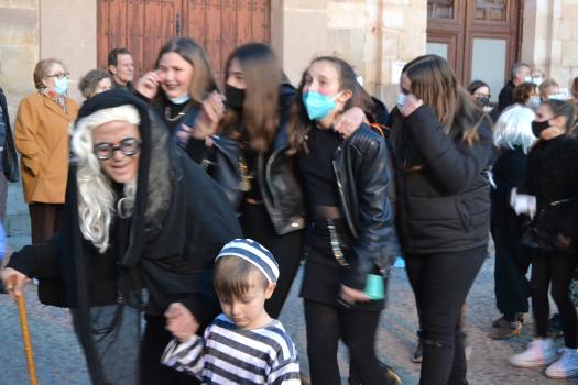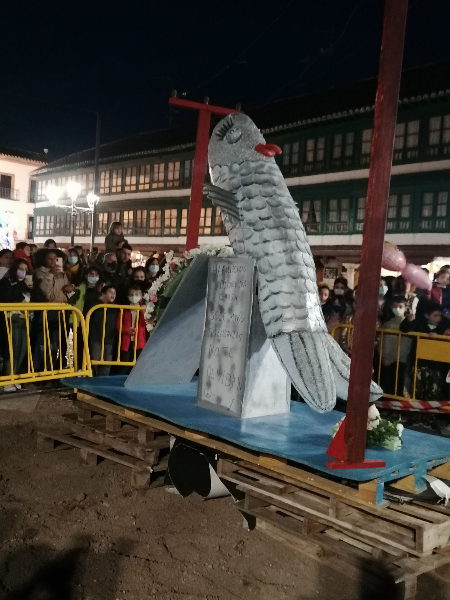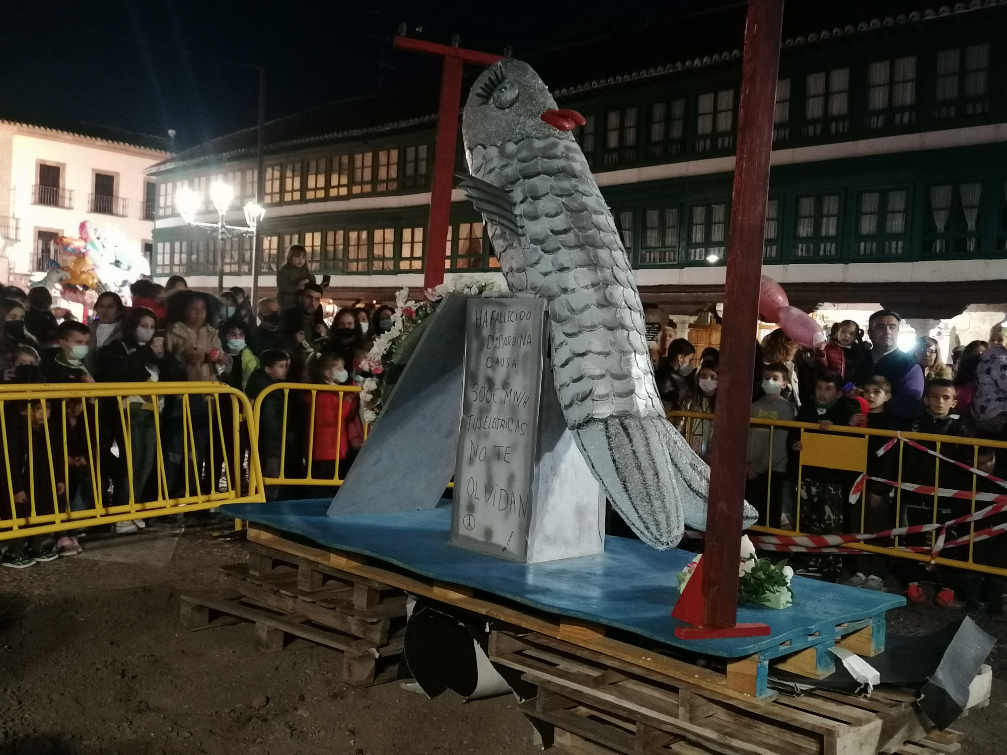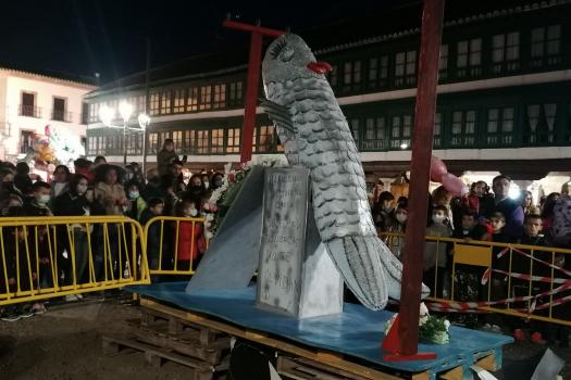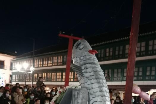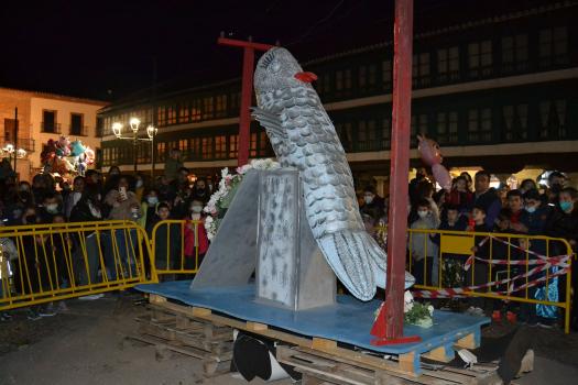 Doña Sardina ha recibido su ultimo adiós en la Plaza Mayor de Almagro acompañado de muchos vecinos que no han querido perderse este delicado momento. El cortejo estaba encabezado por unas bellas mayorettes que se hicieron esperar, detrás doña Sardina que, según los organizadores, falleció a causa de una subida de la luz de 300 euros. Tras ella, las compungidas Cachondísimas y sus familiares más cercanos. El entierro finalizaba con una comitiva de vecinos en sus vehículos antiguos y ataviados para tan sobrio y solemne momento de quemar a Doña Sardina, achicharrada a causa de unos cables de la luz a los que estaba enganchada.