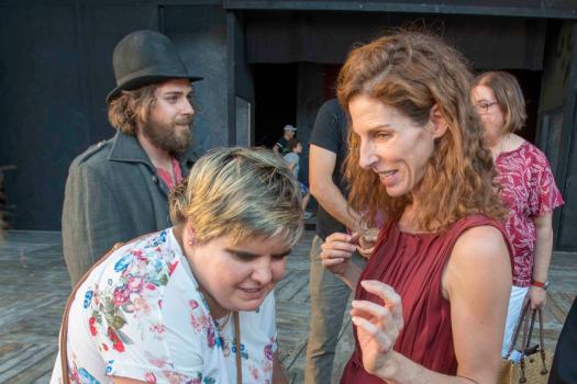 Un grupo de personas ciegas de la ONCE ha podido este fin de semana volver a disfrutar más a fondo El castigo sin venganza realizando un paseo táctil. Con esta actividad, los asistentes darán un paseo por el escenario del Teatro Adolfo Marsillach. Hospital de San Juan y podrán tocar, percibir y entrar en contacto con la puesta en escena de la producción de la Compañía Nacional de Teatro Clásico El castigo sin venganza.