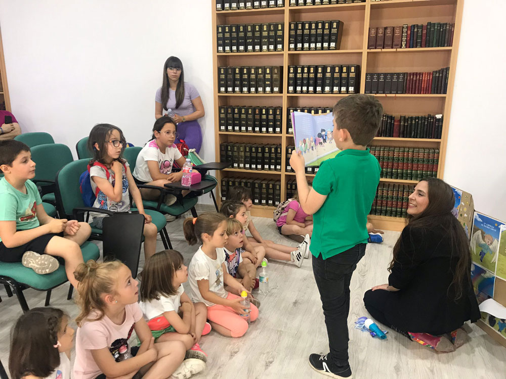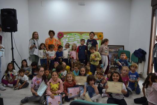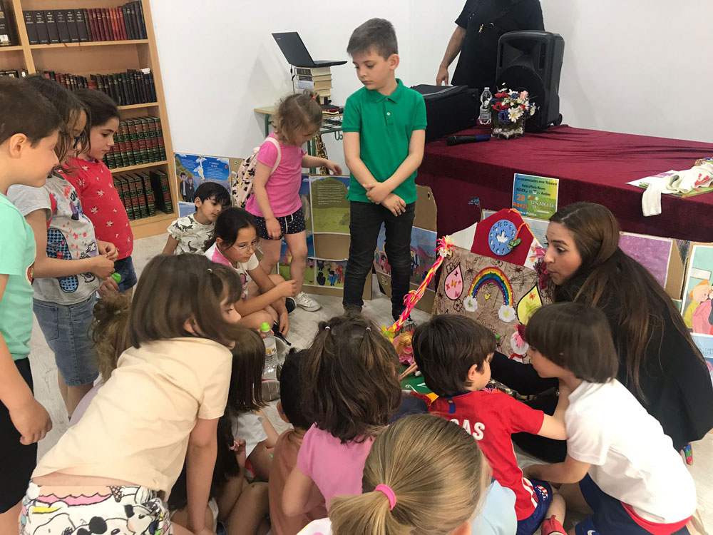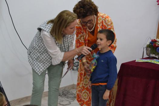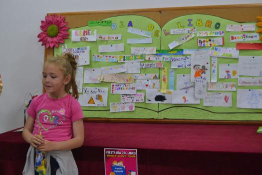 La siguiente actividad fue la celebración del Día del Libro el día 21 en la Biblioteca. Para ello preguntamos a los niños “Mi libro favorito”, estos escribieron su título en un papel y lo decoraron. Y nosotros colocamos la respuesta en un libro gigante. Luego ellos nos comentaban su elección. También hubo “Cuentacuentos” y la concejal del Ayuntamiento Teresa Barrajón, les hizo entrega de Premios y Diplomas a los mejores lectores de la Biblioteca, a los niños que más les gustan los cuentos y a los usuarios más pequeños. Fue una tarde llena de ilusión para aquellos que eran recompensados por su dedicación y constancia en la lectura.