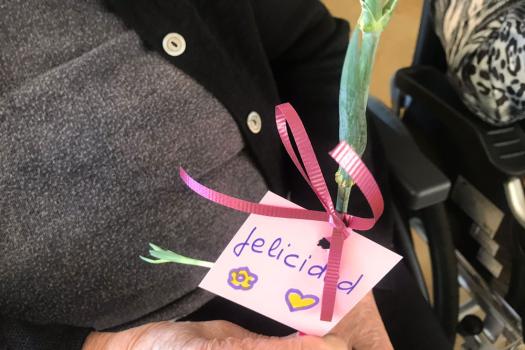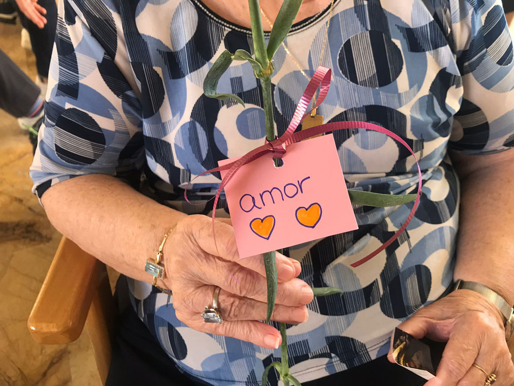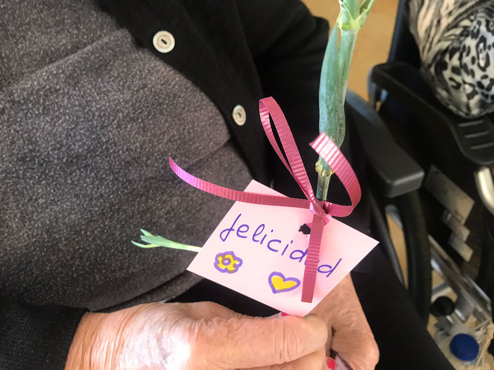 El jueves siguiente día 27, nos dirigimos a la Residencia de Mayores de la localidad para celebrar el Día del Libro con todos ellos. En sus rostros vimos el reflejo de la alegría que suponía para ellos el recibir un clavel al que iba adherida una palabra que lo decía todo: amor, amistad, paz, alegría… Fueron unos momentos muy emotivos.